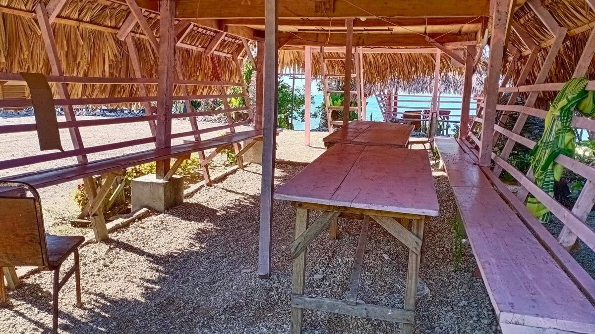 Bring the whole family or your group of friends to our beachfront place with an attic style experience of up & down accomodation. We are a white sand beach resort and there is no swimming pool. Attic rooms accomodations only and there is no hotel.