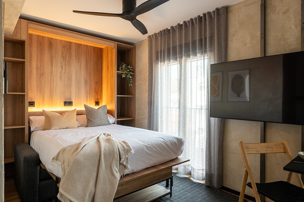 Encantador Estudio recien reformado en la zona de casa de Campo. Ubicado en una de las zonas más vibrantes y emergentes de Madrid, se encuentra a solo 3min caminando del metro Batan y a 4 paradas de metro de la plaza España - Gran Vía. Con un estilo contemporáneo y funcional, el estudio se encuentra a estrenar y cuenta con todos los detalles necesarios para ofrecerte una experiencia única. Cuenta con una cama de medidas 120cm x 190cm idealmente para una persona.