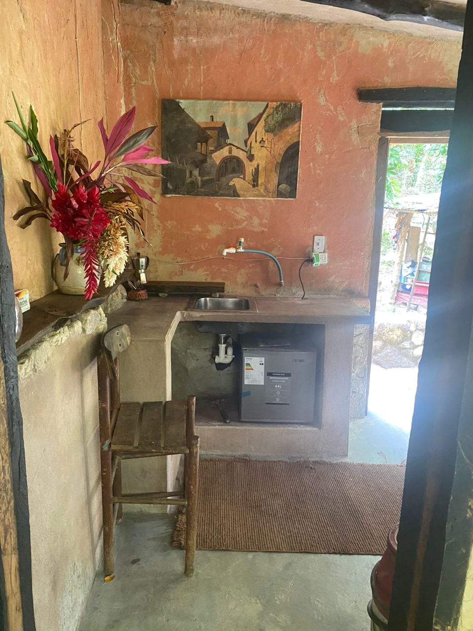 Double room with air conditioning, hot water, WiFi 🛜 and kitchen. It offers a wonderful mountain view near the beaches as well as the rivers.