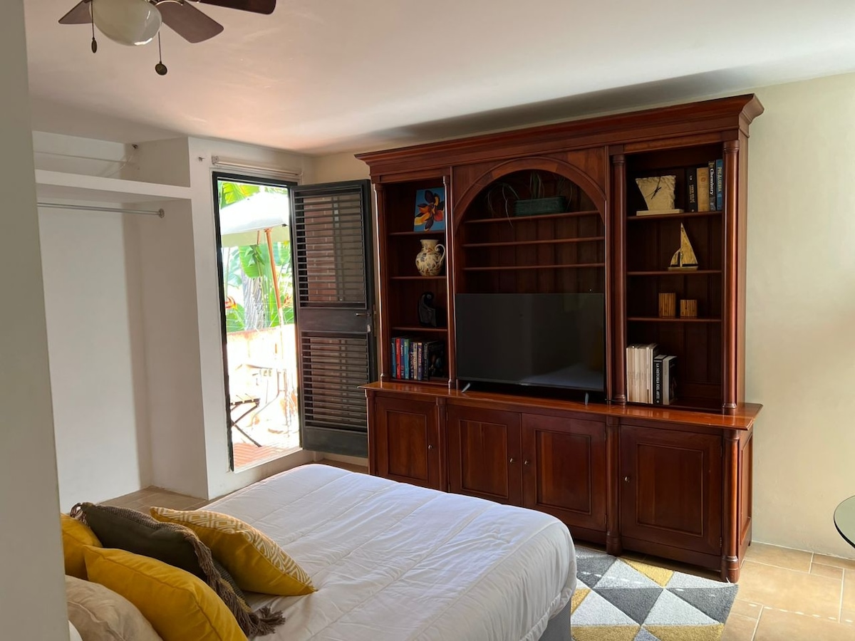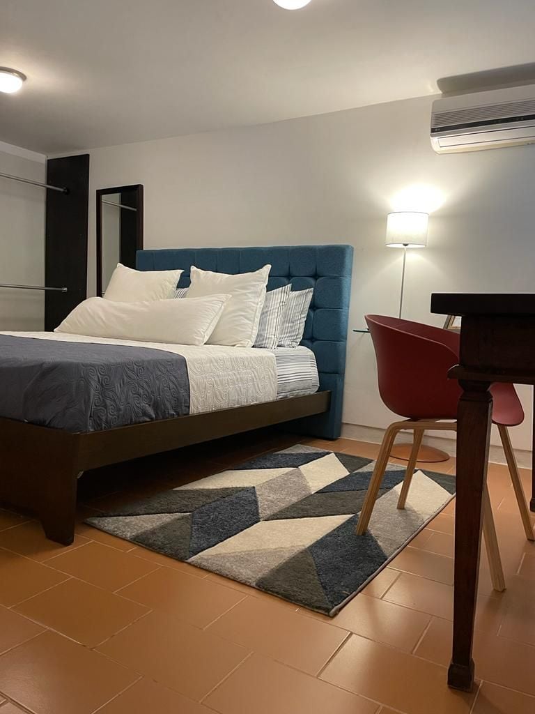 Suite acogedora, con todos los servicios, dos espacios, al acceso pequeña mesa con sillas nevera ejecutiva y microondas y baño y closet, habitacion con cama doble pilow tamaño queen. Inmejorable diseño y equipamiento. Ubicacion en planta baja, pequeño porche