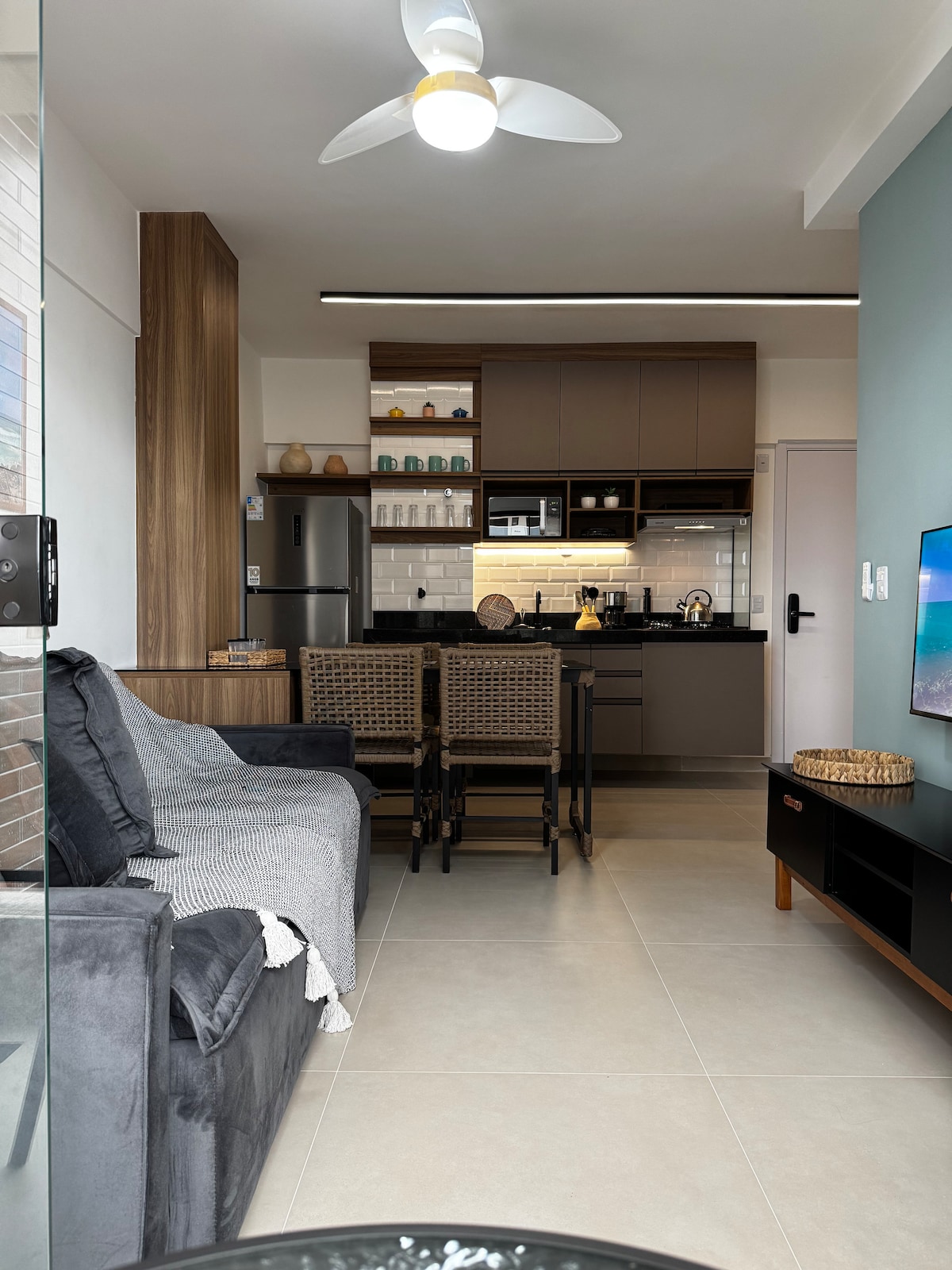 Cozy and newly renovated apartment in front of Martim de Sá beach, with air-conditioning in the living room and in both bedrooms, and a 42-inch TV with Netflix released for you to watch. Our apartment does not have a view of the beach, but as soon as you leave the building, just cross the street and you will already be on the beach without the need to be driving around in traffic. We have a preference for renting to couples and families. We do not rent to groups.