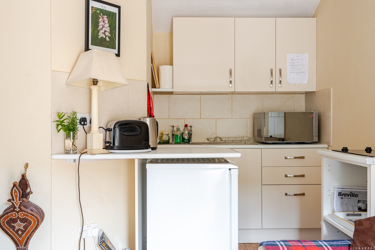 Self contained studio, 15 minutes from Cardiff Centre close to the coastal path, a cozy modern studio is perfect for visiting Cardiff and Newport. Kitchenette: fridge, microwave, tea & coffee. Includes breakfast items for Fri/Sat night. King size bed & sofa bed for a max. of four people, travel cot for babies. Off road parking, own transport is essential, enjoy the peaceful surroundings. Large garden available for guests, perfect for a relaxing break or as a work base.