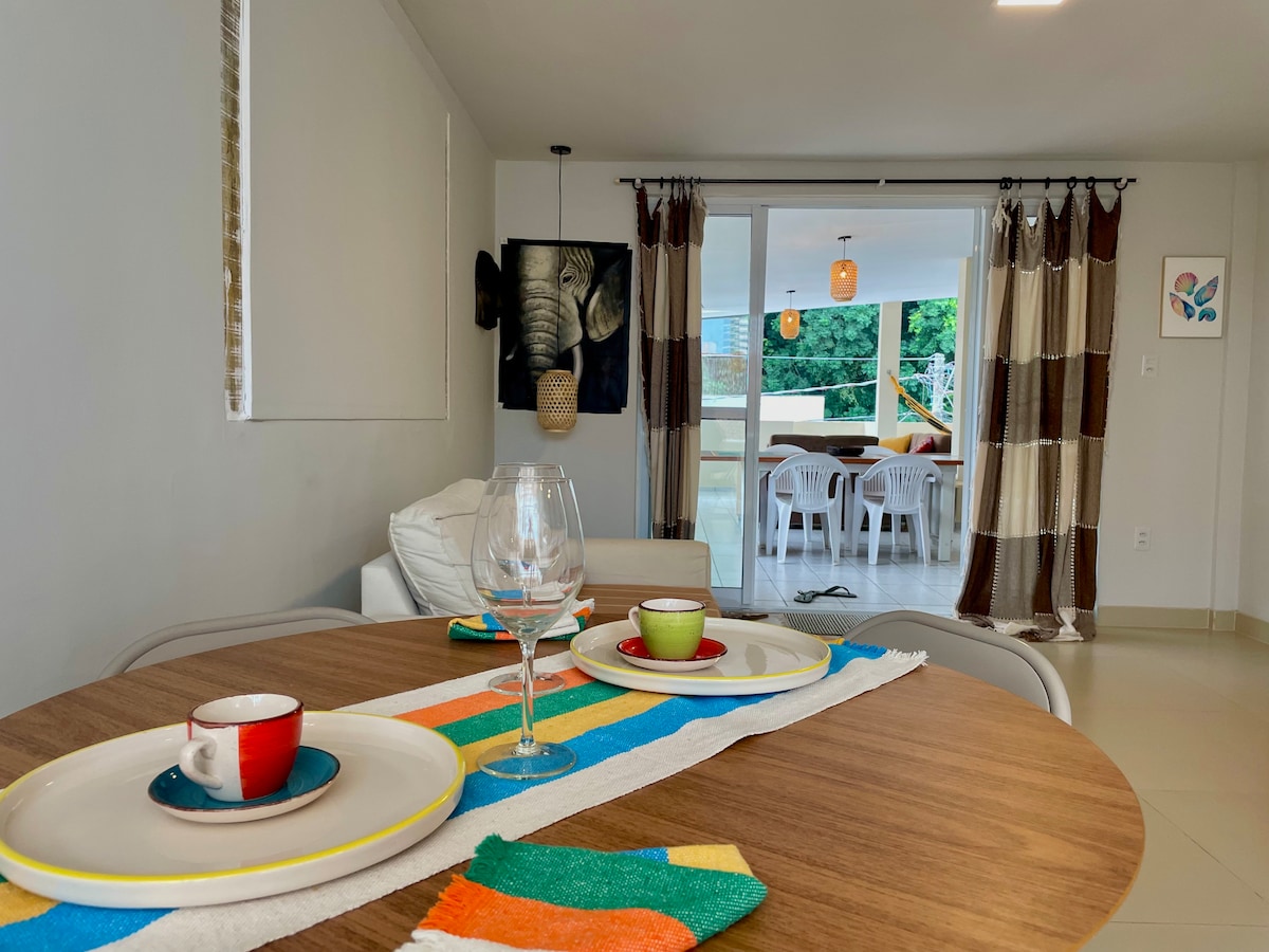 Split air conditioning in the 2 bedrooms; TV in all rooms (in the 55" living room with HBO Max and Prime Video and TV in the 2 bedrooms of 50" and 40") 3 blocks from the sea/Itaparica waterfront (7-minute walk) Garage In front of the condominium there is a pharmacy, bakery, restaurant, pizzeria 3 large supermarkets 700 meters away 3 ceiling fans (2 bedrooms and 1 living room); 1 queen-size mattress; 1 full-size mattress; hairdryer; electric coffee maker; blender; Airfryer, work rack; office chair