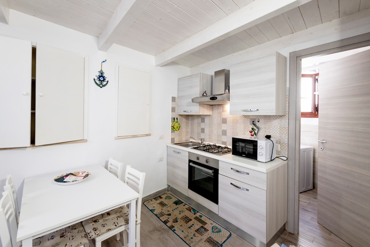 Modern and practical apartment consisting of a kitchen, a bedroom, and a bathroom. Completely renovated, it is convenient for those who want to get to know and explore our Basso Sulcis coast; it is a short walk from the town center where you can find bars, pharmacy and food. The apartment has all the amenities such as: air conditioning, washer/dryer, wifi, coffee maker, oven and hairdryer. Free parking 100 meters away or parking in front of the apartment.