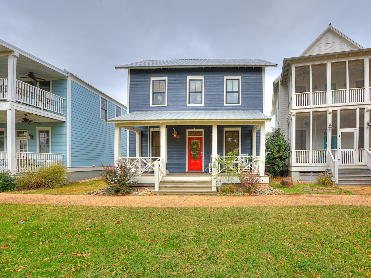 Walk out the front to a beautiful green space with fire pit, picnic tables, waterfall, space to run & play. Less than 2 min to the beach, Mama Tigs, Food Trucks, Sand Volleyball, Shops, Boardwalk Pool & Pool by the lake! With 2 masters, one on the main & the second floor that walks out to a covered deck! This home has space to play, relax & enjoy time with family & friends! *We offer our golf carts as a courtesy to guests, but are not held liable if in need maintenance during your stay.