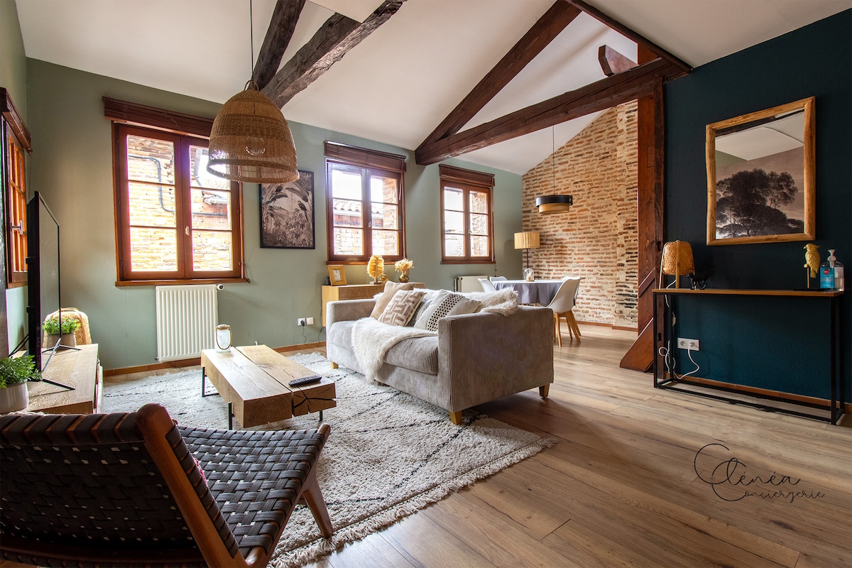 Apartment in the heart of downtown Albi, on Place du Vigan. Lots of originality, so you can have a great time in our beautiful city of Albi. Fully equipped apartment, on the third and top floor: a fully equipped kitchen, a dining room around a good wood fire, an office area, a cozy living room, with a sofa bed and a beautiful original bedroom with its bathroom and dressing room. Air-conditioned accommodation, and equipped with Wi-Fi. This is the perfect place!