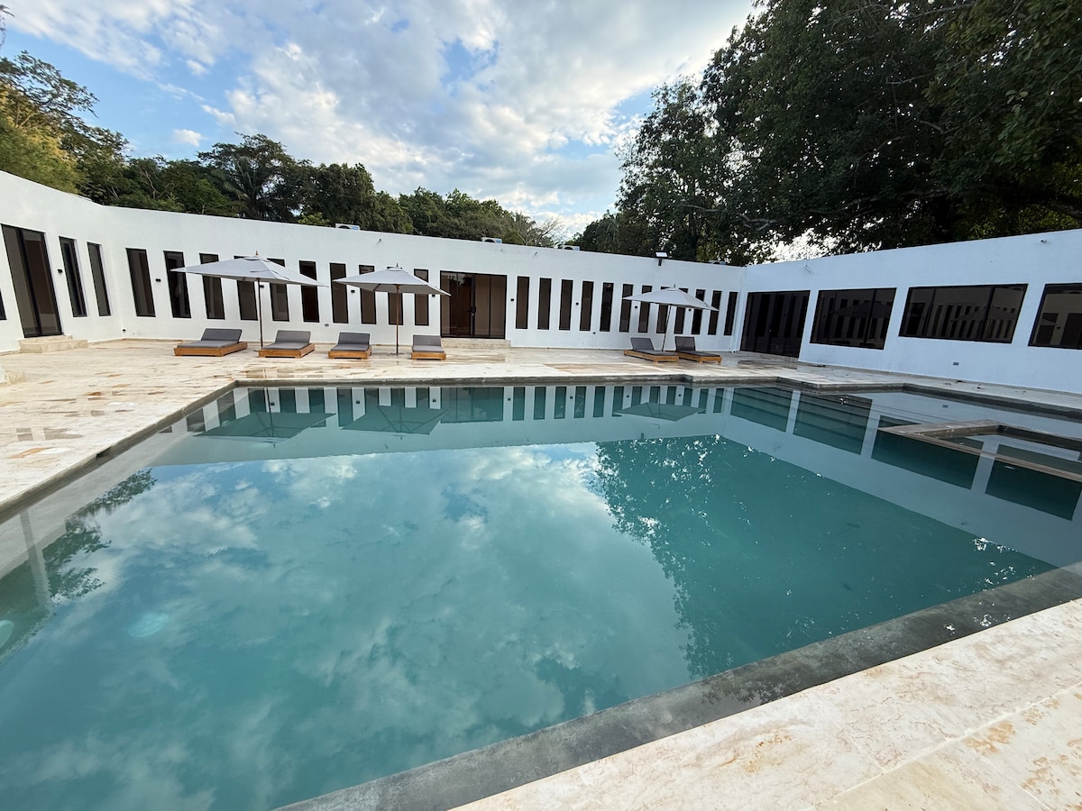Welcome to Casa Bemba! Modern house located 15 minutes from Melgar, on the main road, with ample spaces to relax and socialize. Enjoy all the amenities we have, including the beautiful private pool with glass wall, luxury kitchen, XXL living and dining room, BBQ, 5 comfortable rooms with private bathroom and air conditioning. Surrounded by a beautiful landscape, it gives you the privacy and tranquility you are looking for a perfect weekend. Starlink Internet. @casa.bemba