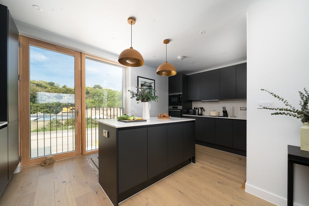 100 yards from the Towan beach and the vibrant town center, this hi spec apartment is the ultimate base to enjoy all that Newquay has to offer! Boasting 3 stylish bedrooms, 2 modern bathrooms, and a spacious open-plan living area. The first floor balcony has uninterrupted views of Towan Beach and Newquay Harbour. Also the bonus of a parking space at the rear and a free beach hut Perfect for couples and families, this retreat offers a residential setting whilst still close to the action.