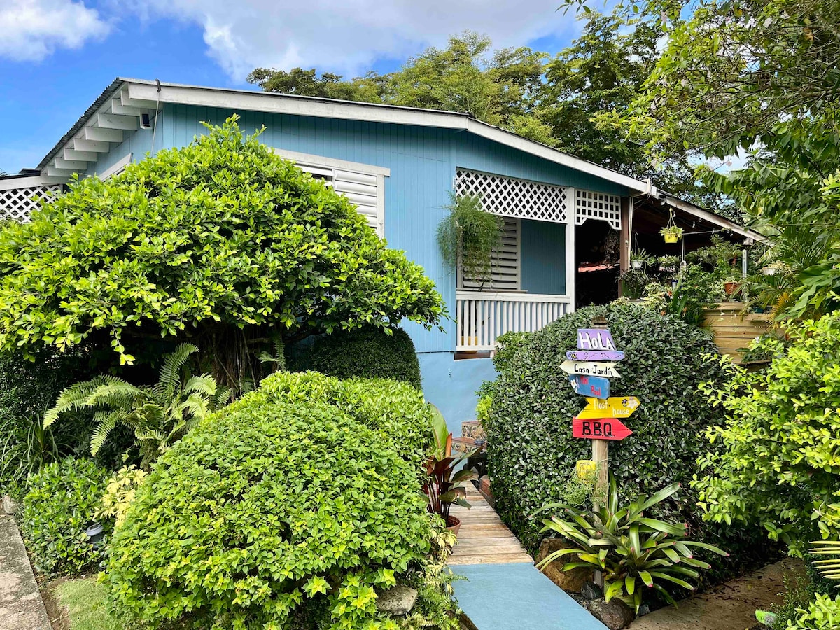 Acogedora casa en madera con mini piscina,deck,jardín y estacionamiento privado . ¿Quieres conectar con la naturaleza? Vive la experiencia de dormir con el cantar del coqui y despertar con el canto de los gallos entre la vegetación del trópico. Estamos ubicados en Trujillo Alto, en un barrio céntrico, a 2 minutos en carro se encuentra el supermercado, Panadería y puesto de gasolina. A minutos del Aeropuerto, la capital, playas y centros comerciales.