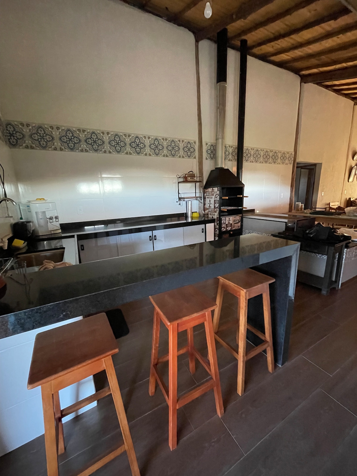 ✨HOLIDAY PACKAGES✨ Welcome to Rancho Encontro dos Sonhos, here you will find: ✔️House for up to 14 people ✔️ Wood-burning stove with serpentine ✔️5 Bedrooms with ceiling fans ✔️Bathrooms - 5 toilets and 6 showers, both in separate stalls. 4 electric showers and 2 with coils; ✔️Gourmet area, with hammock, fire pit, 2 showers and barbecue ✔️41" TV ✔️Wi-fi ✔️ Complete trousseau, except towels for the waterfall ✨We rent for events and courses✨