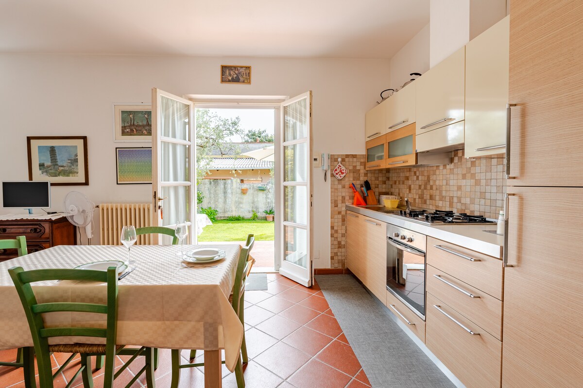 Elegant independent house surrounded by greenery, newly renovated in a prestigious area in Marina di Carrara, close to the beaches. Private and central area near Piazza Menconi (bars, markets, restaurants, buses, etc.). Entirely on the ground floor, spacious bedroom with outdoor patio and garden equipped for eating. The house has air conditioning, washing machine, television, refrigerator, dishwasher, Wi-Fi. For more information, read my profile. *No pets allowed.