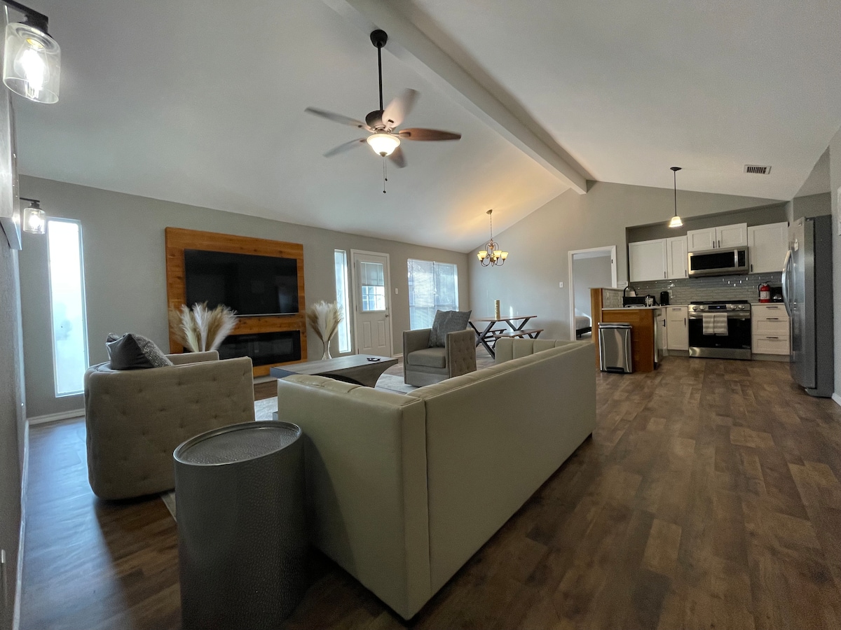 Welcome to The Trap House on Hettie, Denton's hottest short-term rental! Once known for its rough past, this charming 3-bedroom, 1-bath home has been beautifully renovated. Enjoy a spacious living area, a fully-equipped kitchen, and a huge yard perfect for your furry friends! Located just steps from the vibrant downtown Denton Square, you'll have easy access to local shops, restaurants, and entertainment. Experience the perfect blend of comfort and convenience in this unique getaway! 802 SQFT.