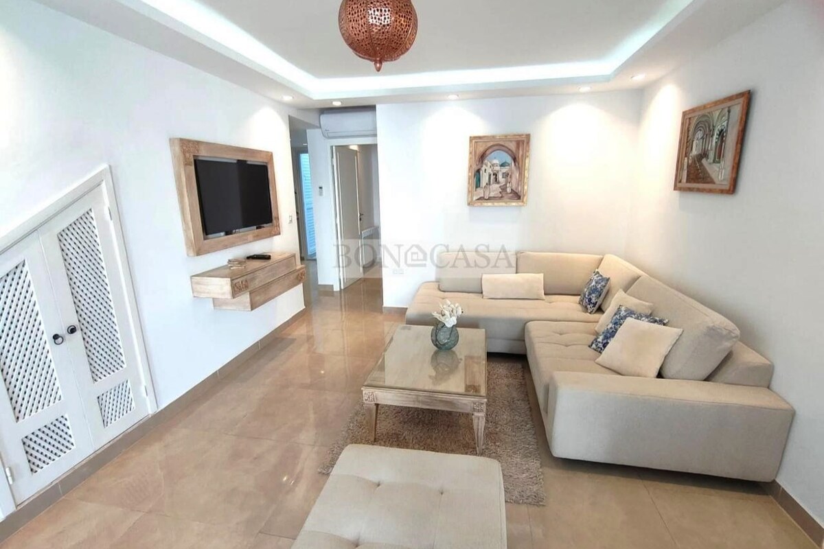 Enjoy a space designed for your well-being, close to the most beautiful neighborhoods in the northern suburbs of Tunis. The apartment, located on the 3rd floor of a private residence, offers a calm and pleasant area to enjoy the sun or relax in complete privacy. 📍 Located in La Marsa, just 2 to 3 km from Gammarth, Sidi Bou Saïd, and Carthage, this apartment puts you just minutes away from beaches, restaurants, and amenities. ✈️ Only 15 minutes from the airport 🏖️ 10 minutes from the beach