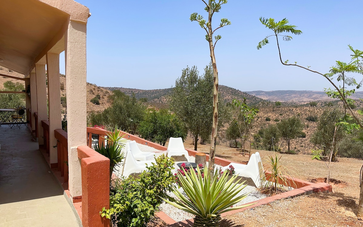 Nichée à flan de colline, la maison Azgzaö est l'endroit idéal pour profiter du calme et de la liberté, en famille ou entre amis, dans un cadre naturel exceptionnel au cœur de la forêt de Benslimane. Sublime refuge pour apprécier la vue imprenable sur la vallée et jouir du silence absolue !