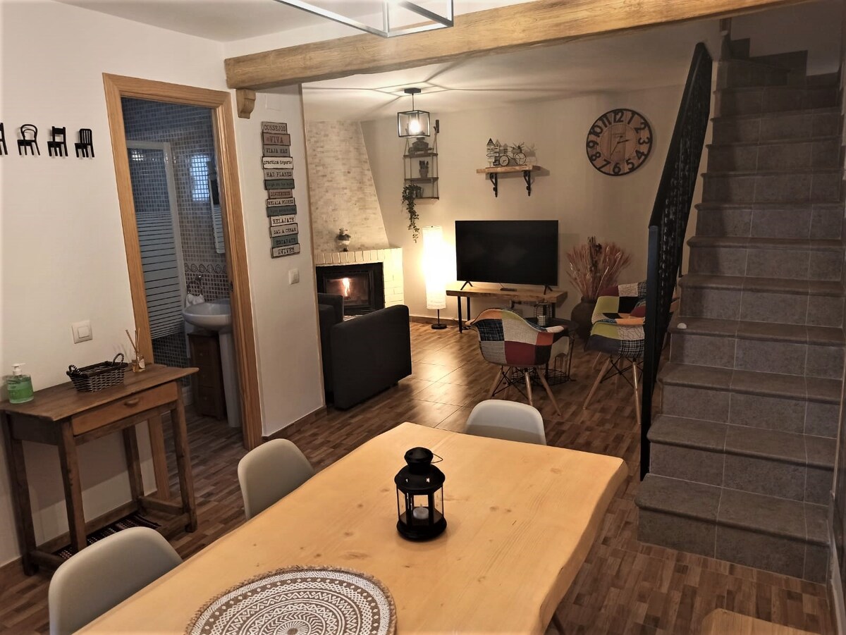 Independent house ideal for couples and small families. Parking and private garden, not shared, porch and barbecue It's not a room, it's a beautiful cottage. Open concept living room. Living area facing the wood-burning fireplace and smart TV, dining room with integrated kitchen, full bathroom, double sink and beautiful bedroom with XXL bed. Next to exit 375 of the A66. Ideal rest between north and south Check if you're coming with a pet. The pool is 100 meters away and is communal