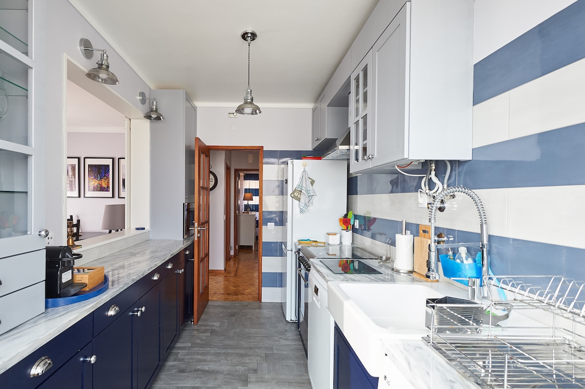 -MAGNIFICENT SEA VIEWS -2 TERRACES -5 MINUTES WALK TO BEACH -FREE STREET PARKING -SUPERFASTWIFI -WORK FROM HOME -LAUNDRY FACILITIES This 2 bedroom & 2 bath apartment is the perfect base for your stay in beautiful Estoril. It's Boho-Chic style in a quaint Portuguese neighbourhood ensures a peaceful & luxurious stay. With views of the sea in every room, sip your morning coffee on the huge terrace whilst you watch the incredible sunrise. Stroll to the beach in 5 minutes and walk along the coast.