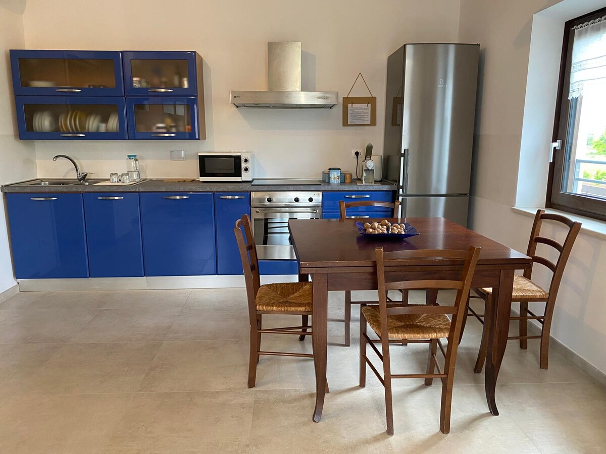 In the heart of La Morra, in a building of the '700 recently restored, with characteristic wooden beamed ceilings, the accommodation is organized on two floors. Combined in rustic style with modern furnishings, it includes a kitchen; large living area with a table for 8 people, a sofa bed; living room with TV and sofas on the upper level. Three bedrooms with queen beds, plus a baby bed. The apartment is completed by three full bathrooms with shower and access to the balconies.
