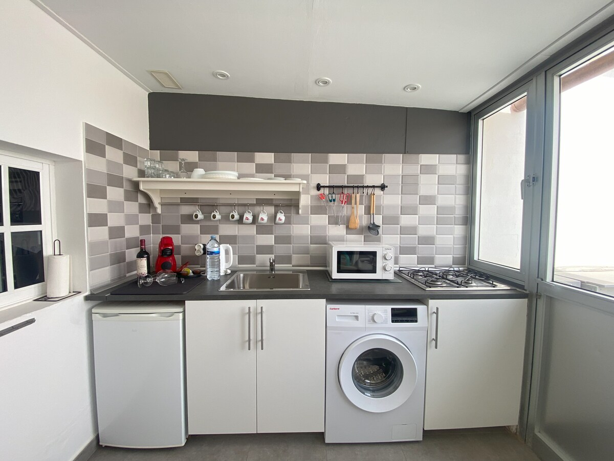 Cosy studio with a loft bed from which to enjoy views of the sea and the horizon. It has a fully equipped kitchen, bathroom with shower, living room and a private terrace with panoramic ocean views. The terrace is perfect for relaxing in the sun loungers, admiring the scenery, or watching the spectacular sunsets on the west coast of Fuerteventura. You can also enjoy an outdoor bathtub to relax in the open air.