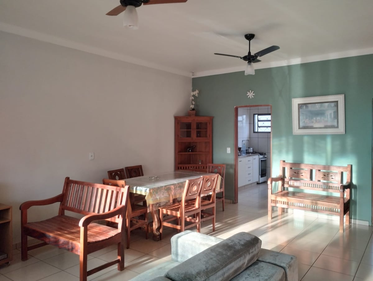 Relax with the whole family in this quiet accommodation. It is a small house with a swimming pool located within the city of Mococa, São Paulo, near the Cohab 2 neighborhood. Cozy and quiet compact space. Kitchen with stove and barbecue integrated into the living room and garage as shown in the photos Two bedrooms Two bathrooms in front of the pool Wi-Fi Swimming pool Accommodates up to 6 people to sleep We DO NOT offer bed/bath linen
