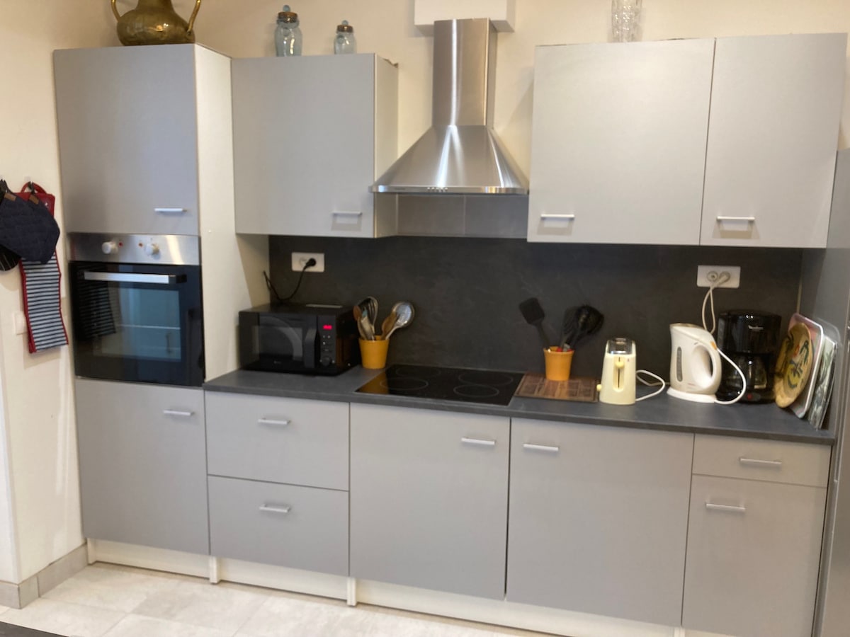 In a village perched on a rocky promontory, a fully restored guest house in a barn welcomes you for moments of relaxation. You will have a fully equipped kitchen with dishwasher. A shower room with washing machine. A separate master bedroom as well as a mezzanine with 2 90 cm beds and a sofa bed. An outdoor relaxation area with dining area. Electric car charging at extra cost.