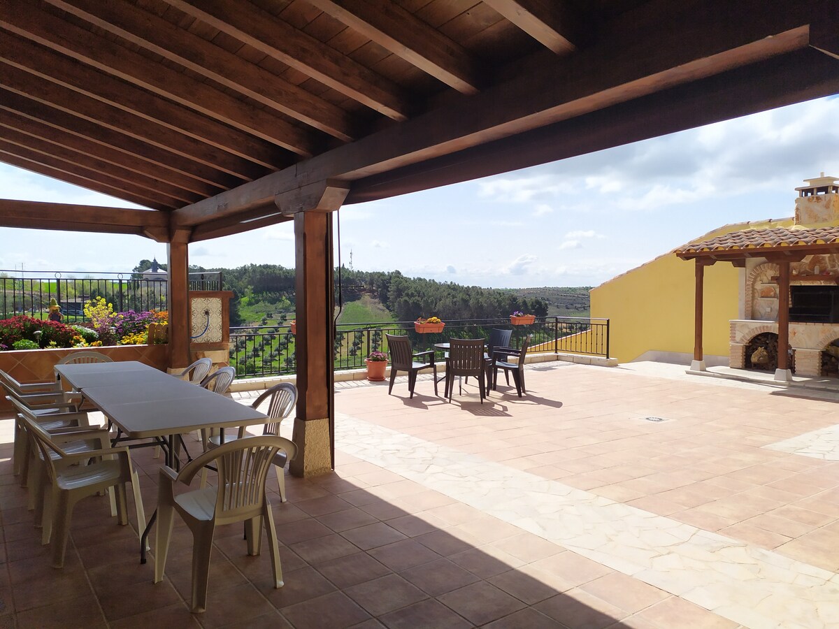 Located in the town of Casas de Fernando Alonso, Cuenca. Halfway between Madrid and Valencia. Connected by the AP 43 and A 3 highways. Very spacious cave, fully refurbished and furnished in a modern and functional style. It is characterized by maintaining a constant temperature of 20 degrees year-round. It has a swimming pool, terrace, barbecue, solarium, two bars, and private parking.