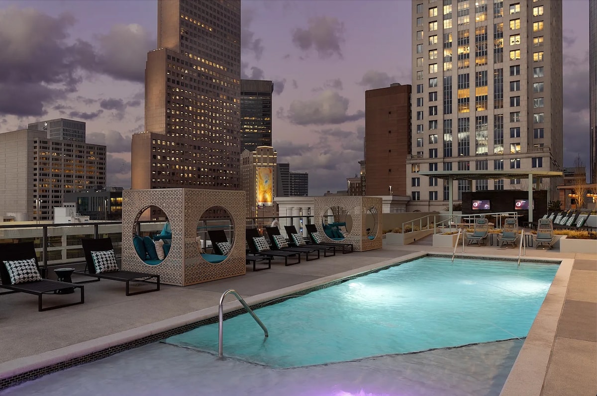 Enjoy a stylish experience at this centrally-located place. In the heart of down town less than 5 minutes away from the Mercedez Benz Stadium. Enjoy some of the best food Atlanta has to offer just walking distance away including but not limited too -Old Lady Gang -Tocos on Peter. (No Mas) -Escobar -Frost B Our lavish sun style pool will give you the tan you dreamed of while creating mood your looking for. With centennial Park being just minutes away you can grab piece of mind there as well