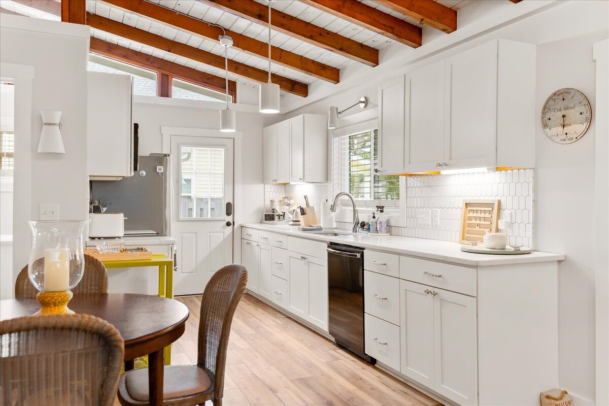 Just 2 blocks to the beach, our vintage Oak Island home has been fully updated and is the perfect space to get away from the every day and find your own island oasis! In the desirable Yaupon Beach area and a 5 minute walk to the beach, a par 5's distance from the Oak Island Golf Club & a few doors down from a bakery & wine shop. Beach gear included, plus a hot water outdoor shower. Hydrangea Hideaway is waiting to welcome you to your Oak Island home! Long term rates available in off-season!