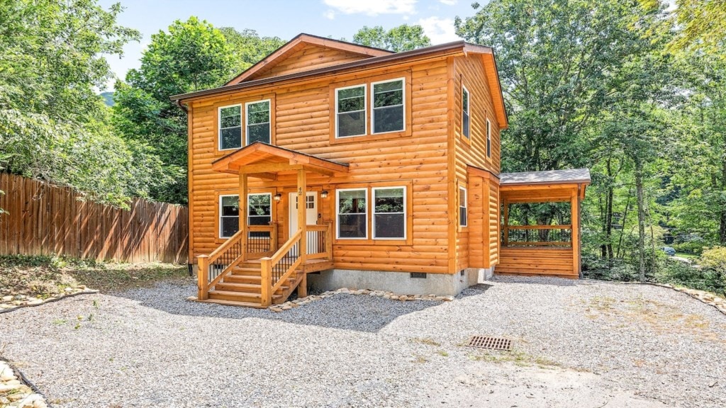 + Private Hot Tub: Relax under the stars after a day of hiking or skiing + Mountain Views from Living Room, porch/deck + WiFi - Starlink (see note below) + Less than 3 miles to Cataloochee Ski Resort and Cataloochee Ranch + Comfortable Living Space: Cozy up by the fireplace in the living room. + Outdoor fire-pit +We have central heat but no AC. +The cabin sits at the top of a private road. It’s not maintained by the city. Please see details on road conditions under “other details to note."