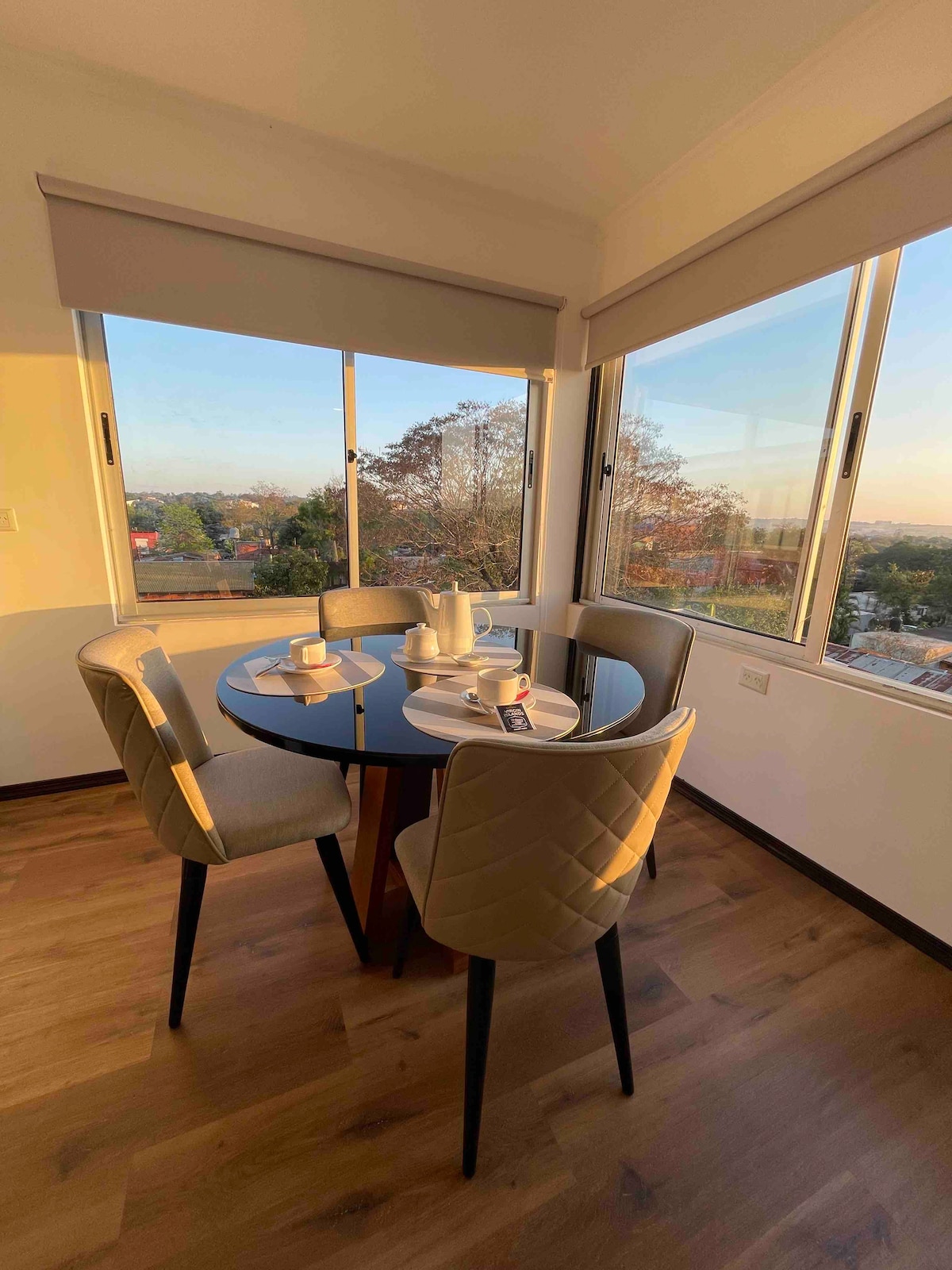 Located in the heart of the city, in the tallest and most modern building, this spacious apartment stands as the perfect choice for your stay. Experience the comfort and charm of Puerto Iguazú from this central point that offers you the opportunity to effortlessly immerse yourself in the vibrant life of the city. It has large balconies with panoramic views of the three borders, Argentina, Brazil and Paraguay, as well as the city center.