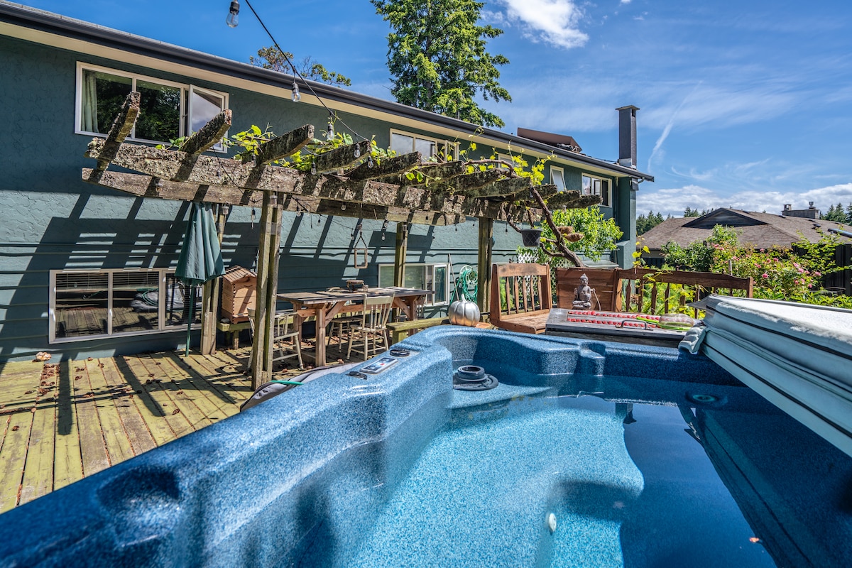 The Trail House is a perfect escape- a modern cabin set on the edge of a forest, overlooking the ocean. The Trail House is more than just your home base to explore, it's an invitation to create space from your everyday life & reconnect with nature. A private spa retreat awaits. Soak in a wood-burning hot tub, unwind in a sauna & cold plunge shower, & relax by the fire. Thoughtfully designed & close to Bowen’s many beaches & hiking trails, The Trail House balances tranquility, style, & comfort.