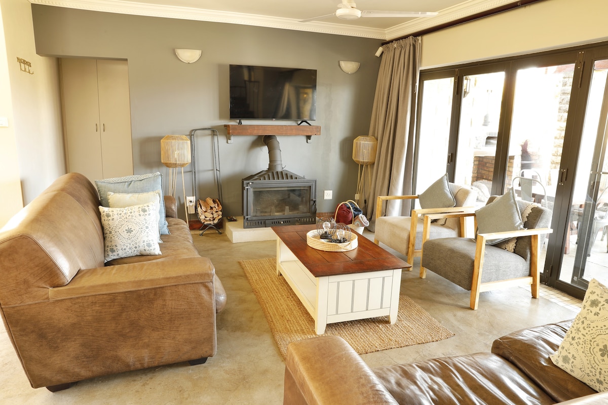 Relax with family and friends at this peaceful place to stay. It's close to so many fun things to do in the Champagne Valley, Central Drakensberg area. This self-catering accommodation really has all you need. It's fully off-grid, using water pumped from our dam and solar electric supply. 3 Bedrooms and 2 bathrooms. New additions include an outside firepit, some outdoor furniture for admiring the beautiful view, a gas heater for crisp winter days and some electric blankets to keep you toasty!