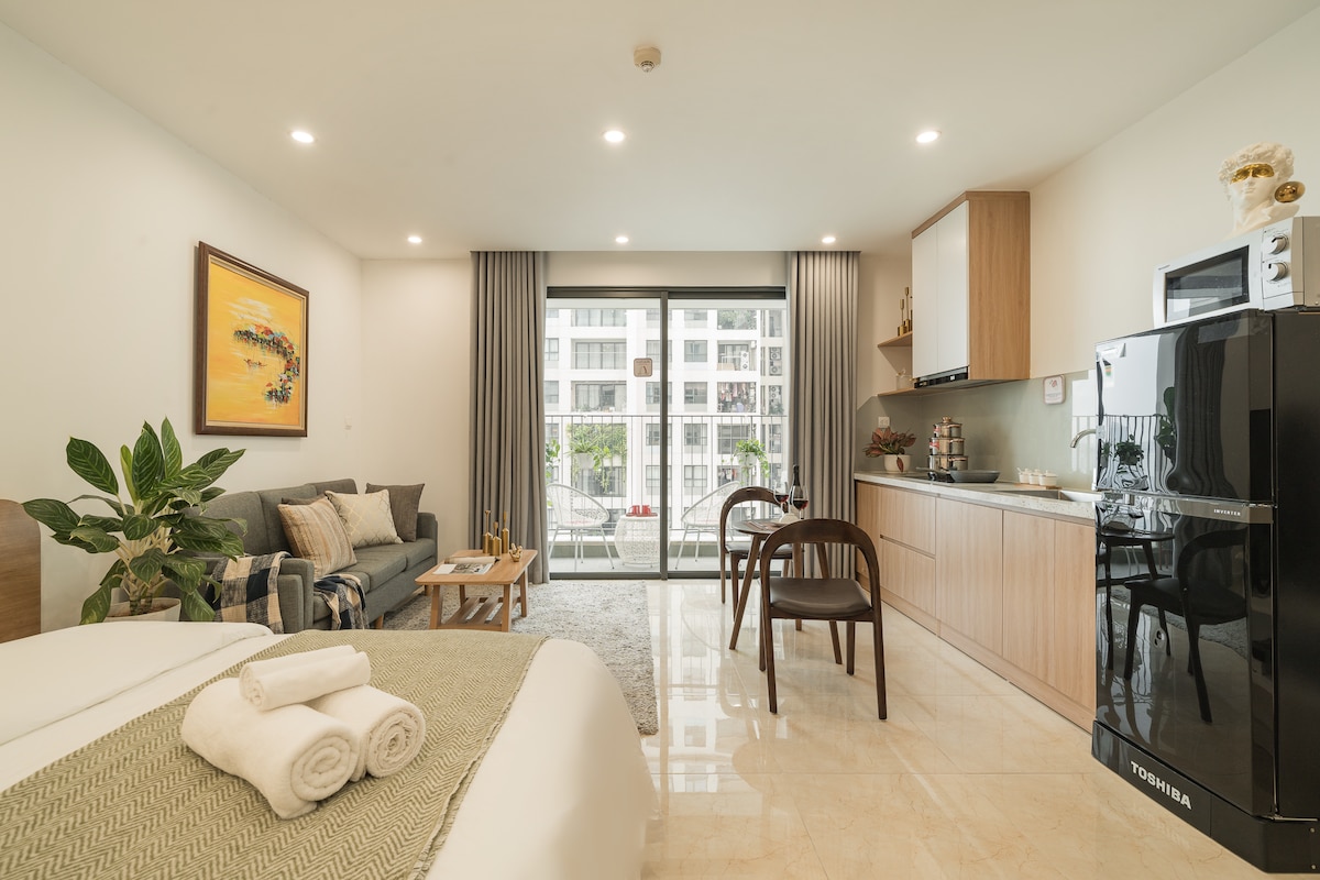 [Free Pool for long stay from 14 nights] - Dear my loved guest! My fully furnished studio apartment is designed to clients who plan to travel or have a business trip in Hanoi. Our brand new apartment is located in VINHOMES D'CAPITALE, Tran Duy Hung street, Cau Giay, Hanoi. - This new apartment is studio apartment with 1 queen size bed , 1 private bathroom, and living-room has nice a sofa for you relaxing with a smart TV after hard – working day, the kitchen has a cooker, fridge, microwave...