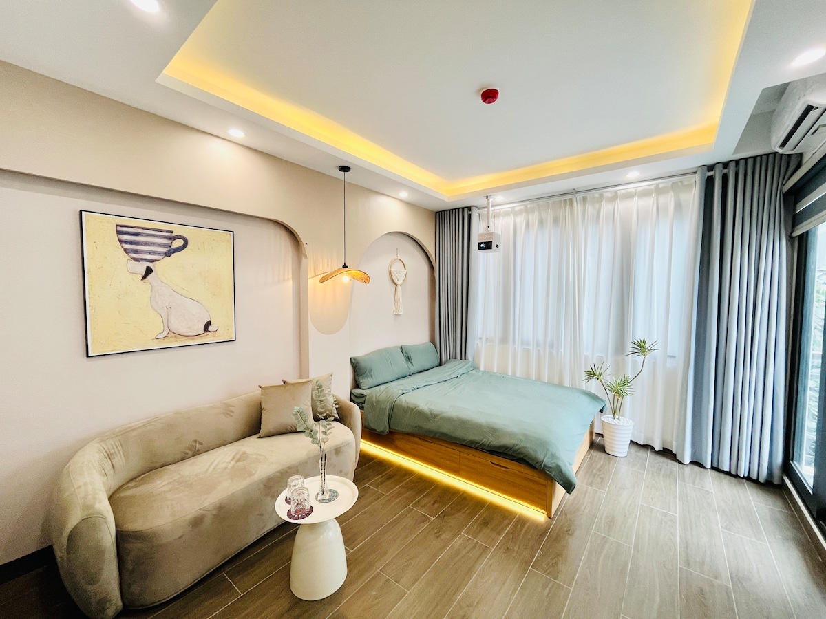 A bright, welcoming studio at HanoPalais Homestay and Residence only a 2-minute stroll from West Lake. Start your day with lakeside walks, grab coffee at nearby cafés, and unwind in a quiet local neighborhood. The studio comes with a full kitchen, in-room washer, fast Wi-Fi, and a comfy bed—perfect for travelers who want convenience without compromising the local vibe. A great base for exploring Hanoi while enjoying peaceful evenings.