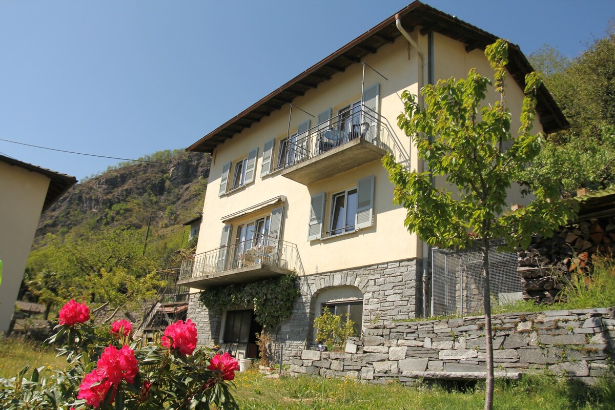 Casa Valeggia is located in a quiet residential area. The house has many windows and sun in charming position above the village of Maggia overlooking the waterfall of the Valle del Salto, nestled in a tropical garden, fully fenced and with a small swimming pool. Close to the house there is the possibility to swim in the river or at the waterfall. Recommended for people seeking tranquility, hikers and in search for privacy and contact with nature. Breath the fresh air from the valley.