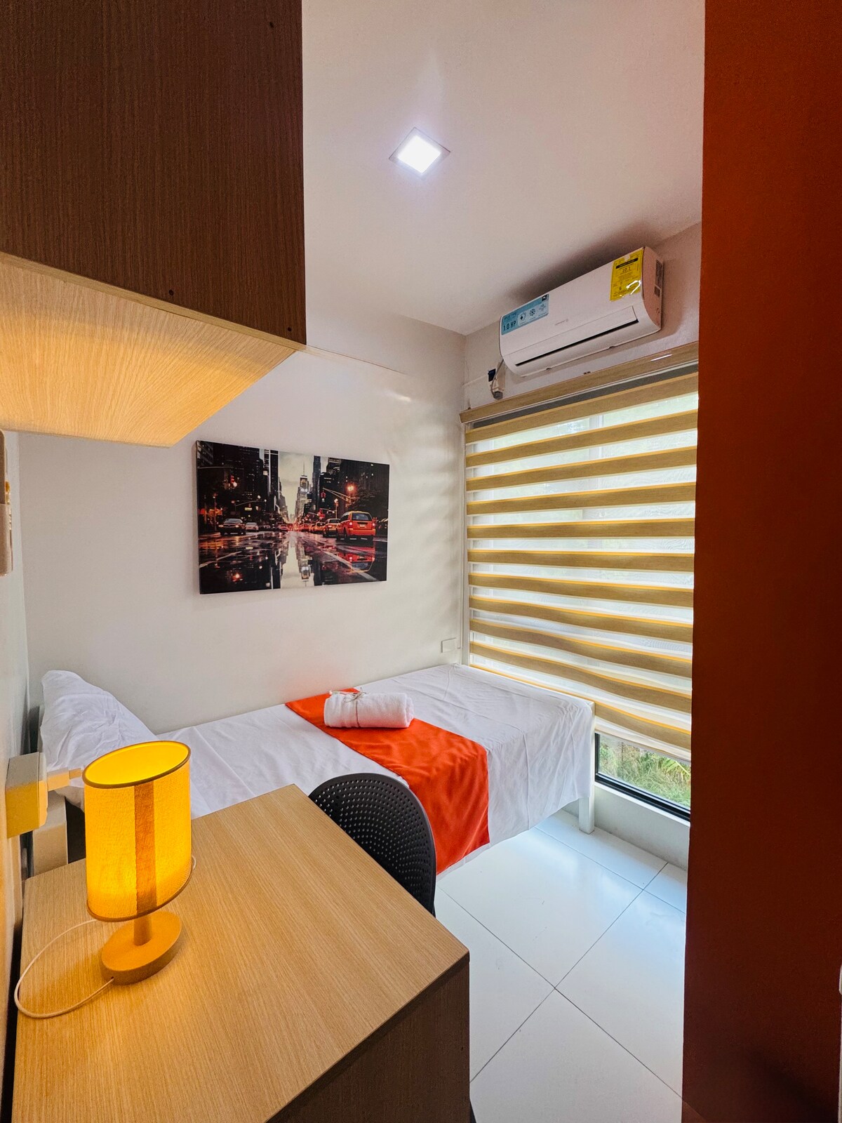 This fresh room is conveniently perfect for solo, all yours with a single bed and bathroom. Enjoy your stay with our fresh furniture and amenities!