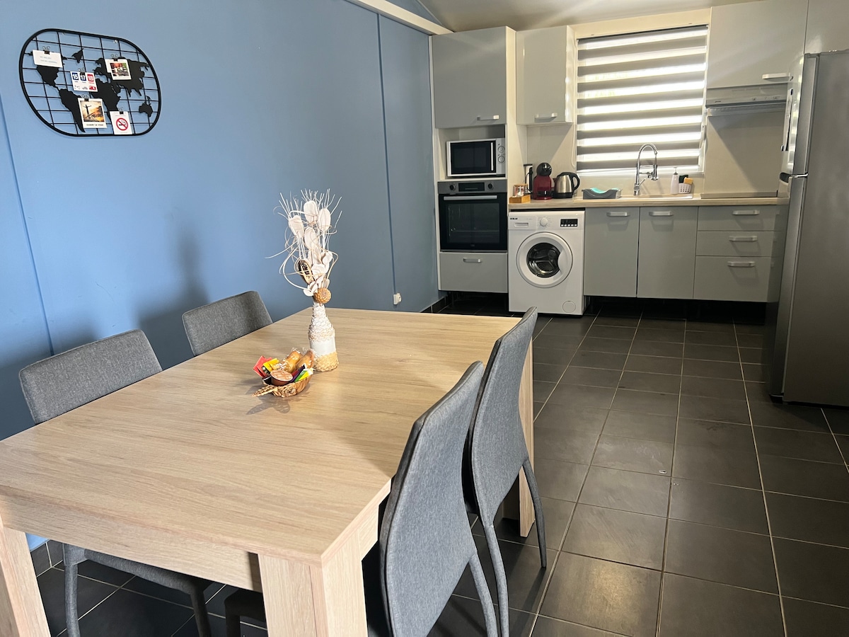 Cozy apartment, new, air-conditioned and relax in a king size bed with TV and a large sofa bed with 65" TV. Close to the village, airport, big shopping mall 20 min away. The 15 m2 terrace for smokers with a jacuzzi for 2 to 4 people and 2 parking spaces. Overnight stay for 4 people/min. 1 night. Weekly or monthly, decreasing price. Check-in between 1 p.m. and 9 p.m./check-out between 6 a.m. and 11 a.m. The entrance and exit are autonomous with a key box. We are classified 3 stars.