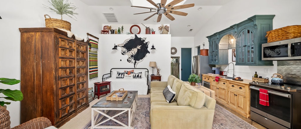 Escape to The Barn at Old Morro, a beautifully renovated floral studio turned private retreat. Perfect for 2, this light-filled space features a king bed, dedicated office, full kitchen, and a magical outdoor area with a fire pit and BBQ under oak trees. Your serene, centrally-located home base for exploring the Central Coast, from Morro Bay to Paso Robles wine country.