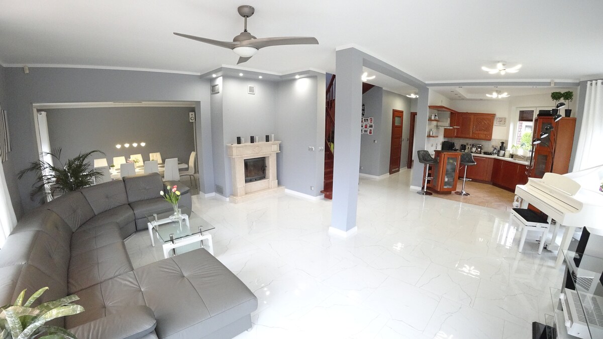 The Bielawy House has been specially designed for relaxation. It features a modern, chlorine-free (active oxygen) heated pool with a massage bench, a 6-person jacuzzi, and a high-quality sauna. The spacious garden includes a playground, ping pong table, monkey bars, trampoline, and volleyball court! Inside the house, guests can relax by the fireplace, play table soccer, Xbox, or poker. The well equipped kitchen provides ideal conditions for cooking. Nearby, there are beautiful lakes and forests