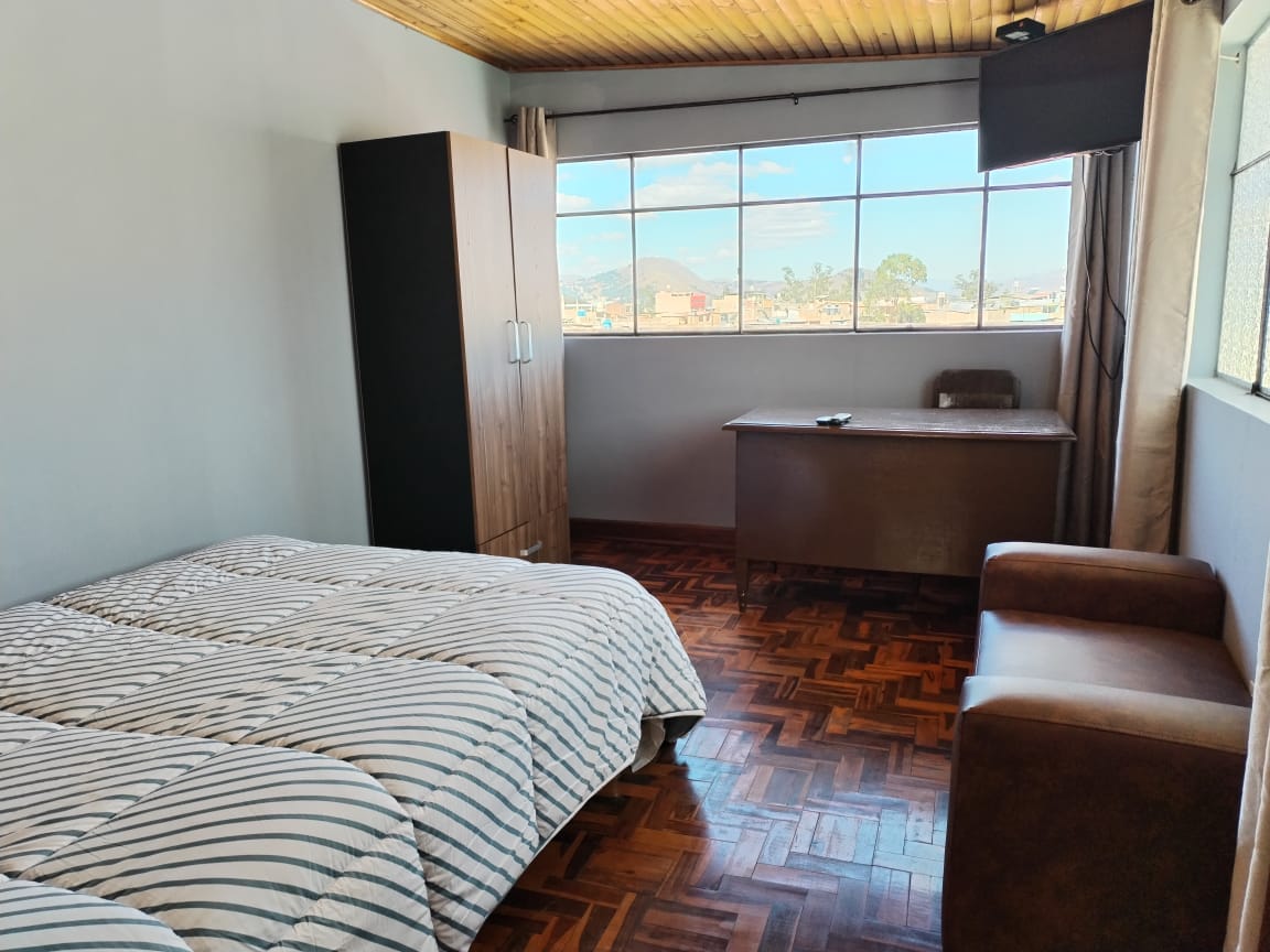 Enjoy the tranquility and safety of Cajamarca in this peculiar MiniDepa with an outside bathroom located on the 3rd floor of our FAMILY BUILDING, with a strategic location to organize your trip: 5 minutes from the Land Terminal and the UNC, 10 minutes from the Plaza de Armas and shopping centers; and 18 minutes from the Airport. Also on the building's first floor you will find a warehouse with basic necessities. Nearby you will find local markets, pharmacies and restaurants.