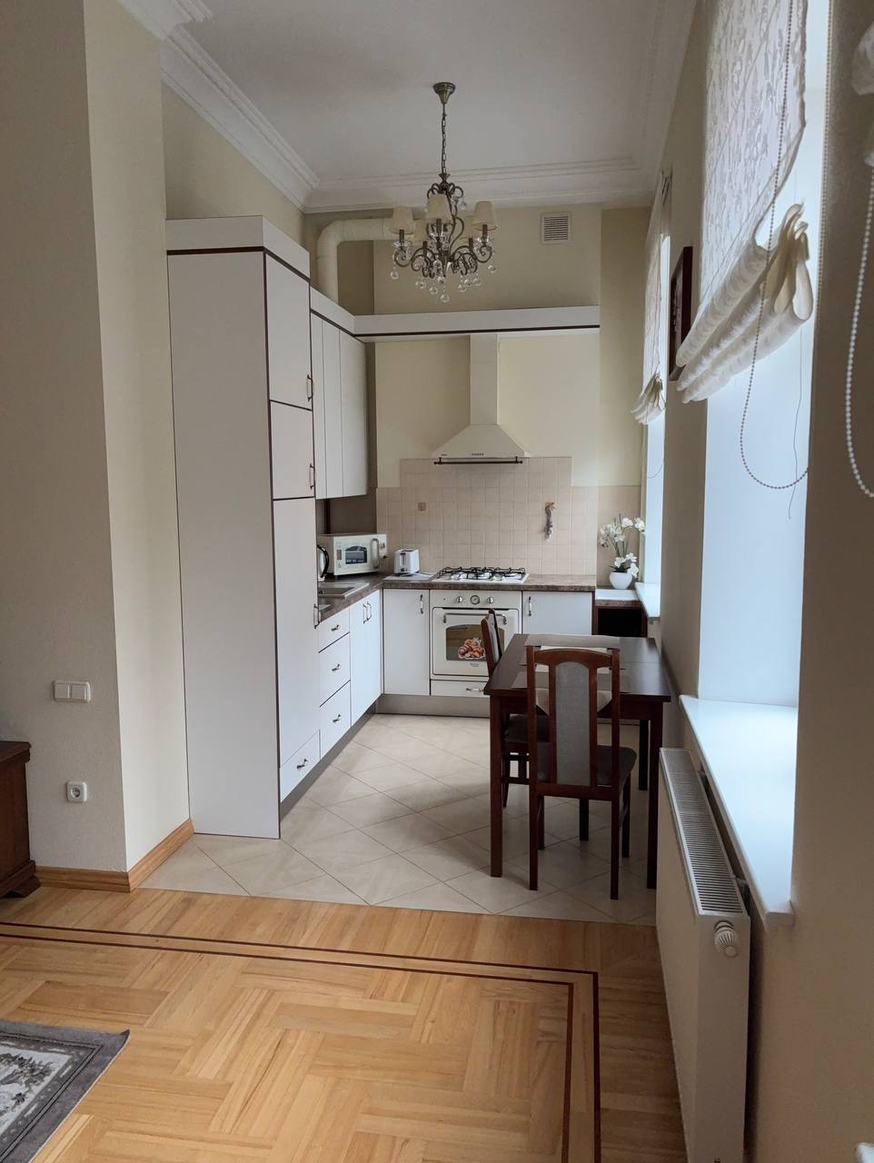 Просторная светлая отреновированая квартира с высокими потолками в тихом центре города. Полностью оборудованная кухня с плитой,холодильником,морозильником,духовкой,СВЧ-печь,посуда, постельное белье,полотенца,WI-FI. Комфорт,уют,отличное расположение. Гостям бесплатно предоставляется чай ,кофе. По предварительному запросу гостей предоставляем разнообразный вкусный завтрак за отдельную плату.
