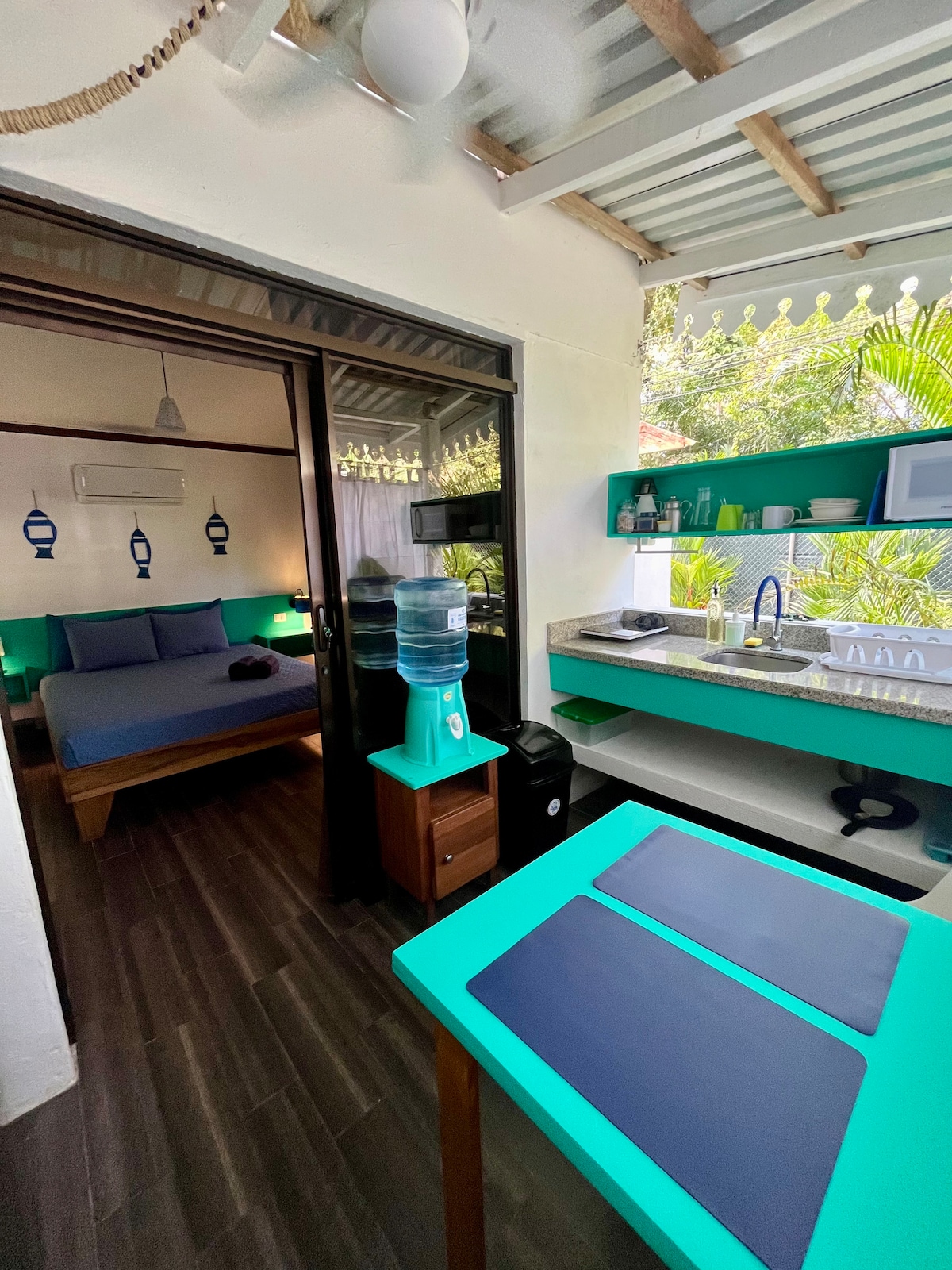 The room has a queen bed, air conditioning, a TV with a Firestick to access streaming services with your own account (no cable TV), and a private bathroom. The small private kitchen has everything you need to make simple meals. Located on Playa Chiquita, in front of the main road, 300 meters from the beach and supermarket, 4 km from downtown Puerto Viejo and 2 km from Punta Uva. Private parking is available. Proudly Costa Rican🇨🇷