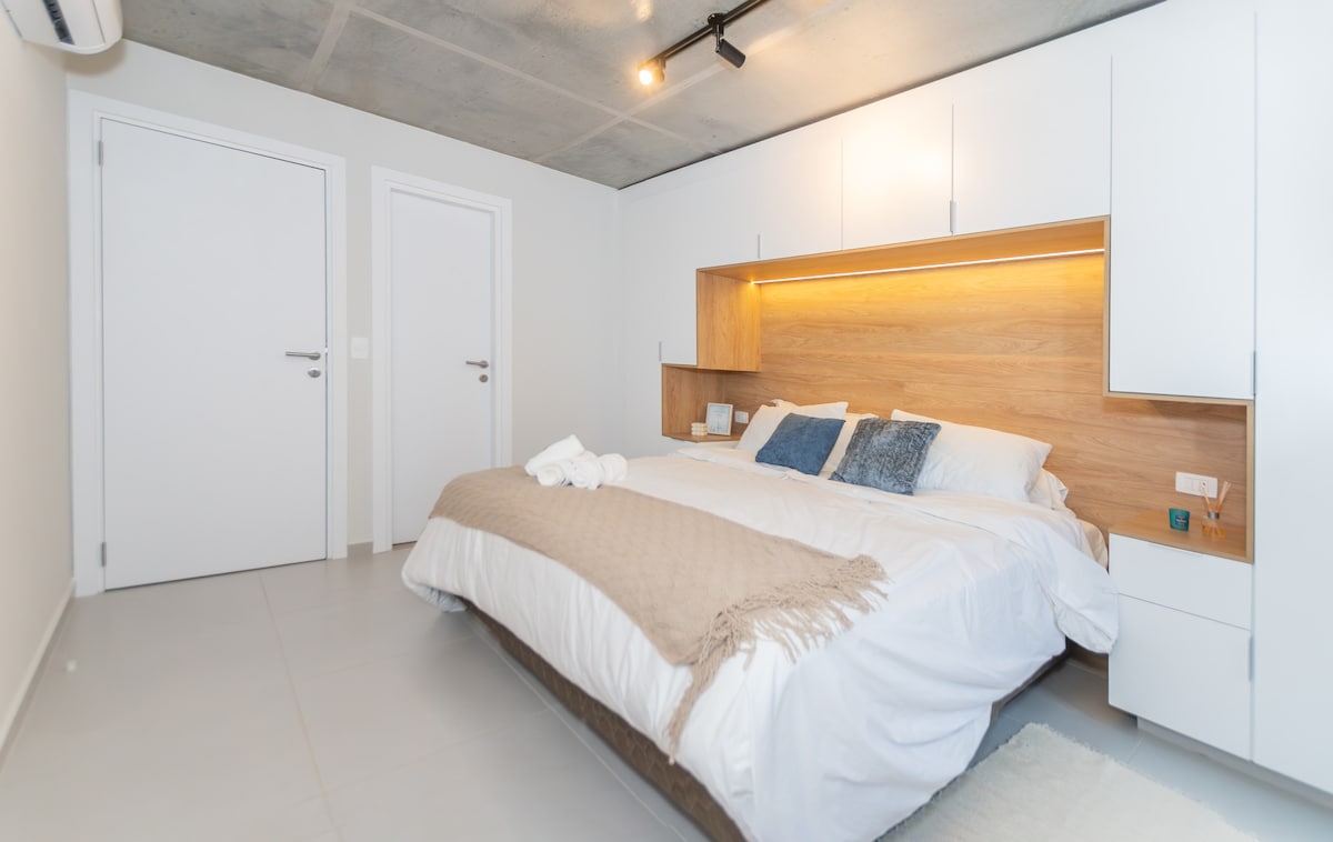 69m² w/ private balcony * 3 mins walking distance to cafes, dining and shopping center * Fully equipped for a comfortable stay * 1 ensuite bedroom (King Bed) + 1 double bedroom * Dedicated workspace * 1 smart TVs * Onsite washer * 24/7 doorman * Parking for 1 car * 200 Mbps Wi-Fi Amenities * Pool * 2 BBQ / Event Room (1 outdoor and 1 air conditioned) * Gym * Movie Theater * Workspace / Coworking
