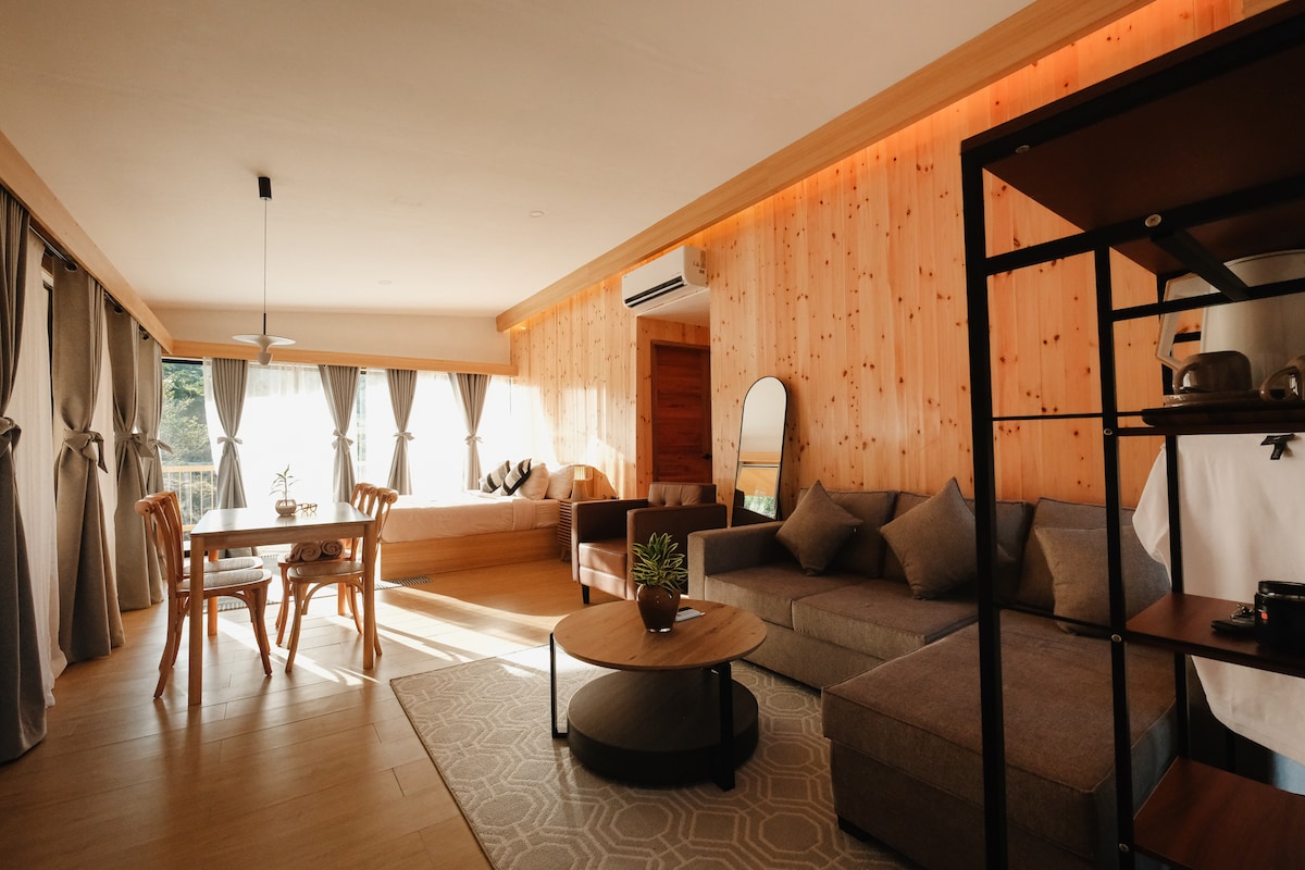 Campgrounds Glamping Villa – Mantalongon Relax in an open-plan villa with a queen-size bed, couch, and balcony. The base rate covers 2 guests, with a maximum of 4. Perfect for couples or small groups seeking a cozy nature escape in the cool highlands.