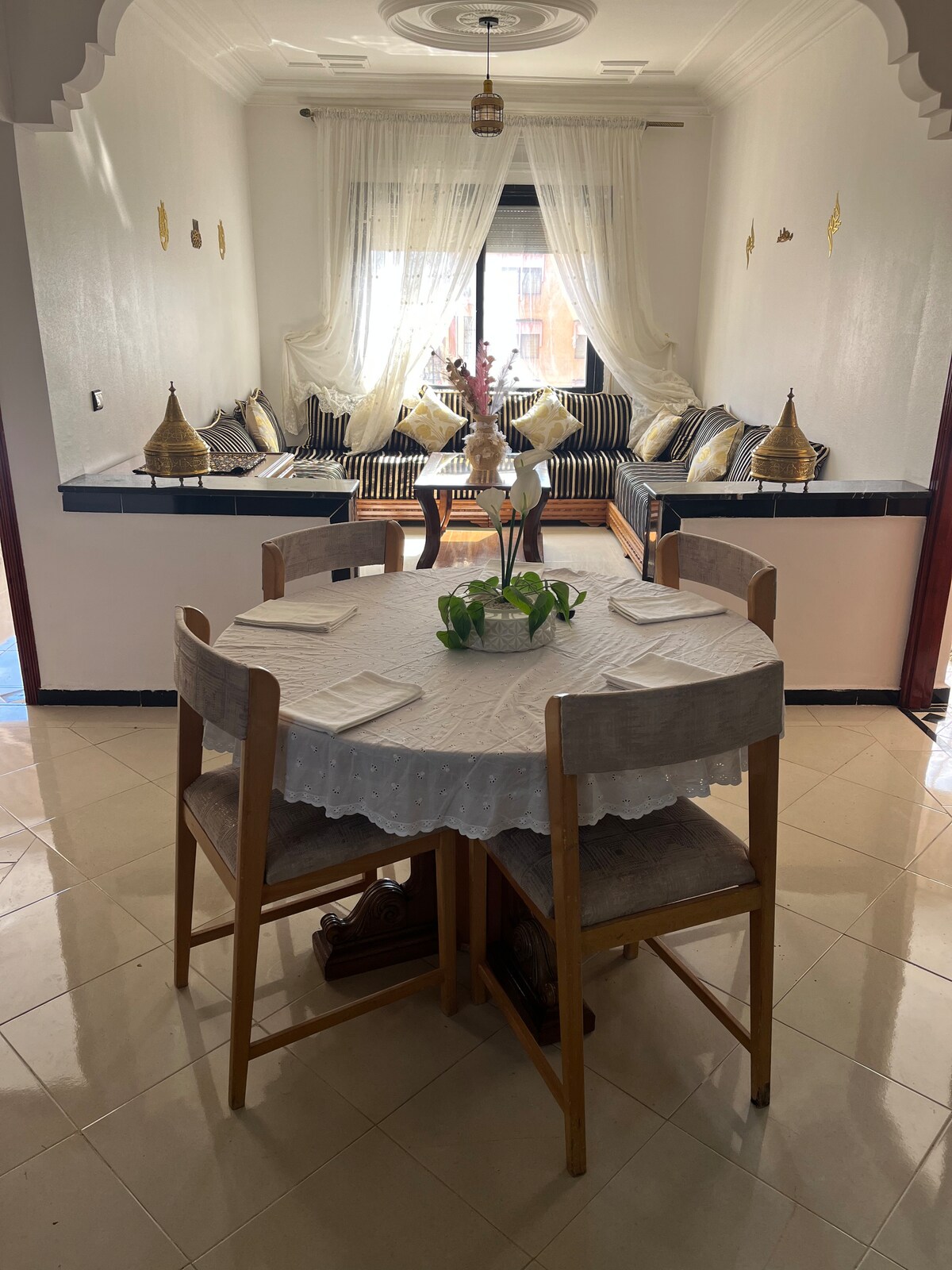 Bienvenue dans notre charmant appartement de deux chambres, un mélange exquis de charme marocain et d'élégance moderne au cœur de khemisset. L'appartement est bien équipé avec des équipements modernes qui répondent à tous vos besoins. Une cuisine entièrement équipée, une terrasse de charme, deux chambres offrant chacune une retraite unique. Chaque coin a été conçu pour améliorer votre confort et améliorer votre séjour.