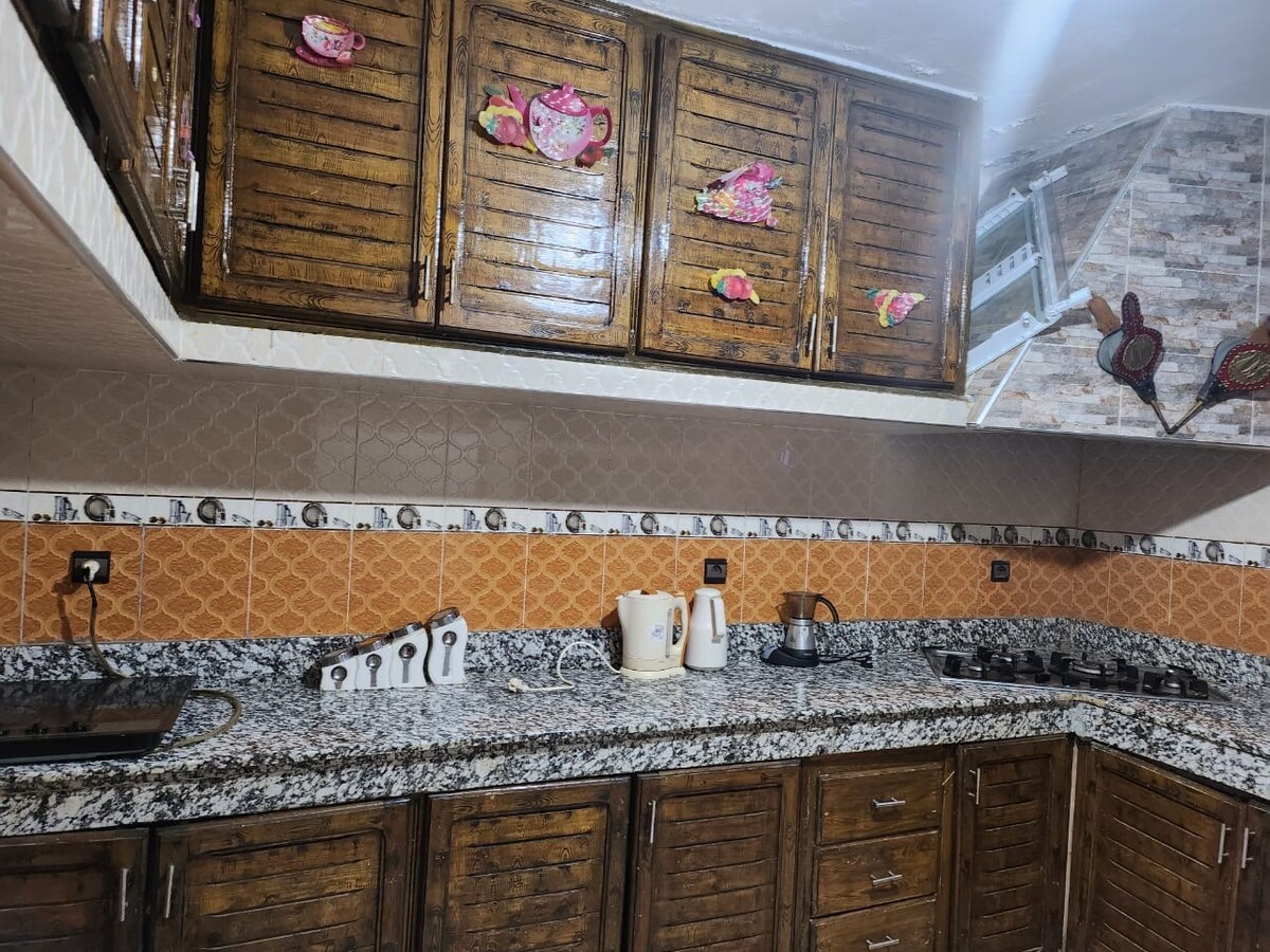 Appartement de 100 m², idéalement situé sur boulevard Mohammed V, en plein cœur de Khemisset. Parfait pour les familles, cet appart comprend 2 chambres a coucher, 2 salons, une salle à manger, une cuisine entièrement équipée et une salle de bain. Profitez d'une smart TV et d'Internet haut débit. L'immeuble est calme et sécurisé, avec un café au rez-de-chaussée et une salle de jeux avec tables de billard et Snooker et stations PS5 de jeux pour les enfants. Parking securisé et gratuit dispo.