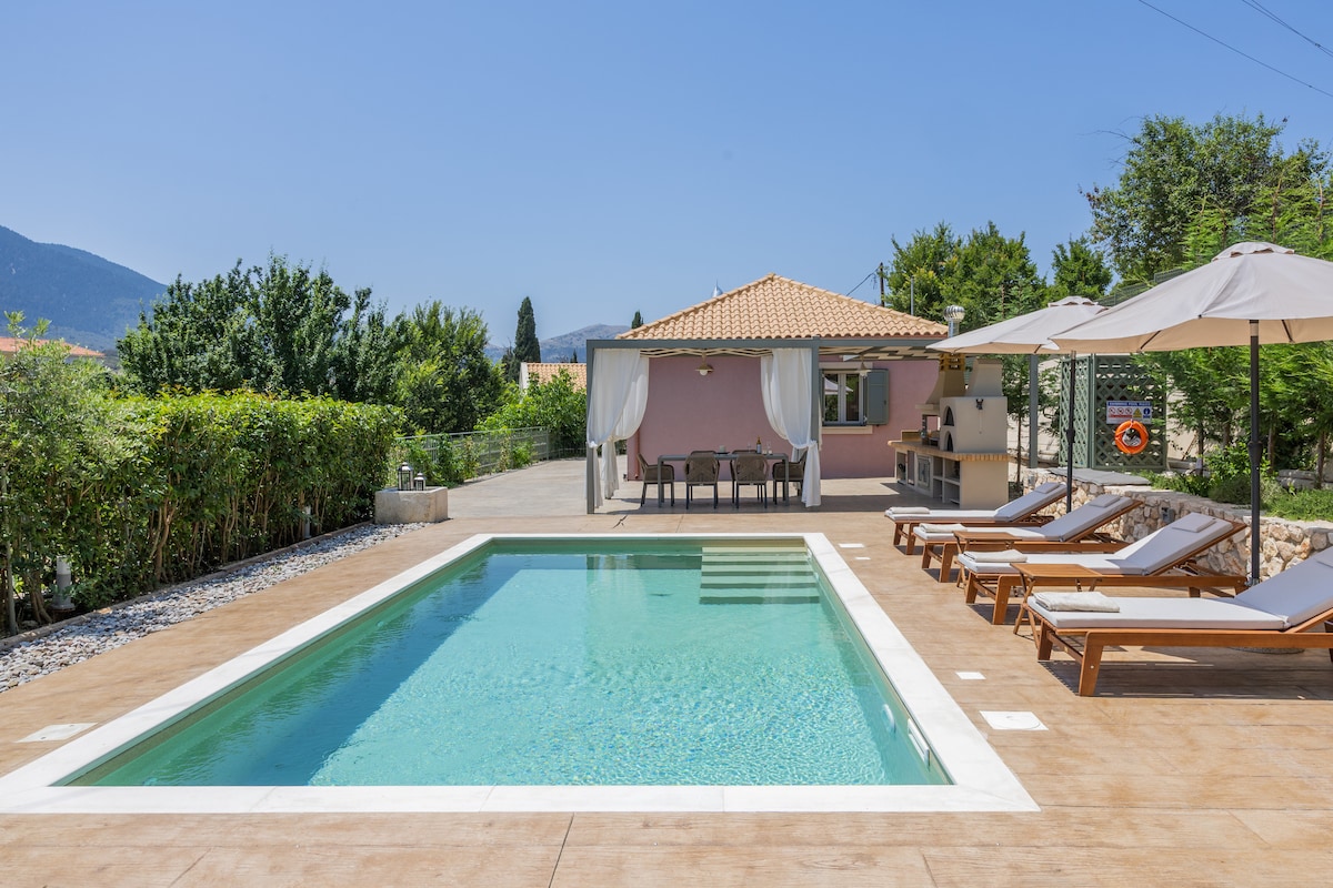Νεόκτιστη βίλλα στους πρόποδες του βουνού Αίνος με ιδιωτικό πάρκινγκ.Εξωτερικοί χώροι για να απολαύσετε την θέα του βουνού με πισίνα, μπάρμπεκιου, τραπεζαρία και υπαίθριο κιόσκι.Σε κτήμα 4,5 στρεμμάτων με αμπέλι,ελιές, κυπαρίσσια και λουλούδια το οποίο περιβάλλεται από αγνό φυσικό περιβάλλον.Ιδανικός χώρος για ζευγάρια και παρέες που επιζήτουν ιδιωτικότητα και χαλάρωση, κατάλληλη για όσους εργάζονται με τηλεεργασία.Κοντά στην Σκάλα,τη Σάμη,την Αγία Ευθυμία,την παραλία Αντίσαμο και τα Σπήλαια.