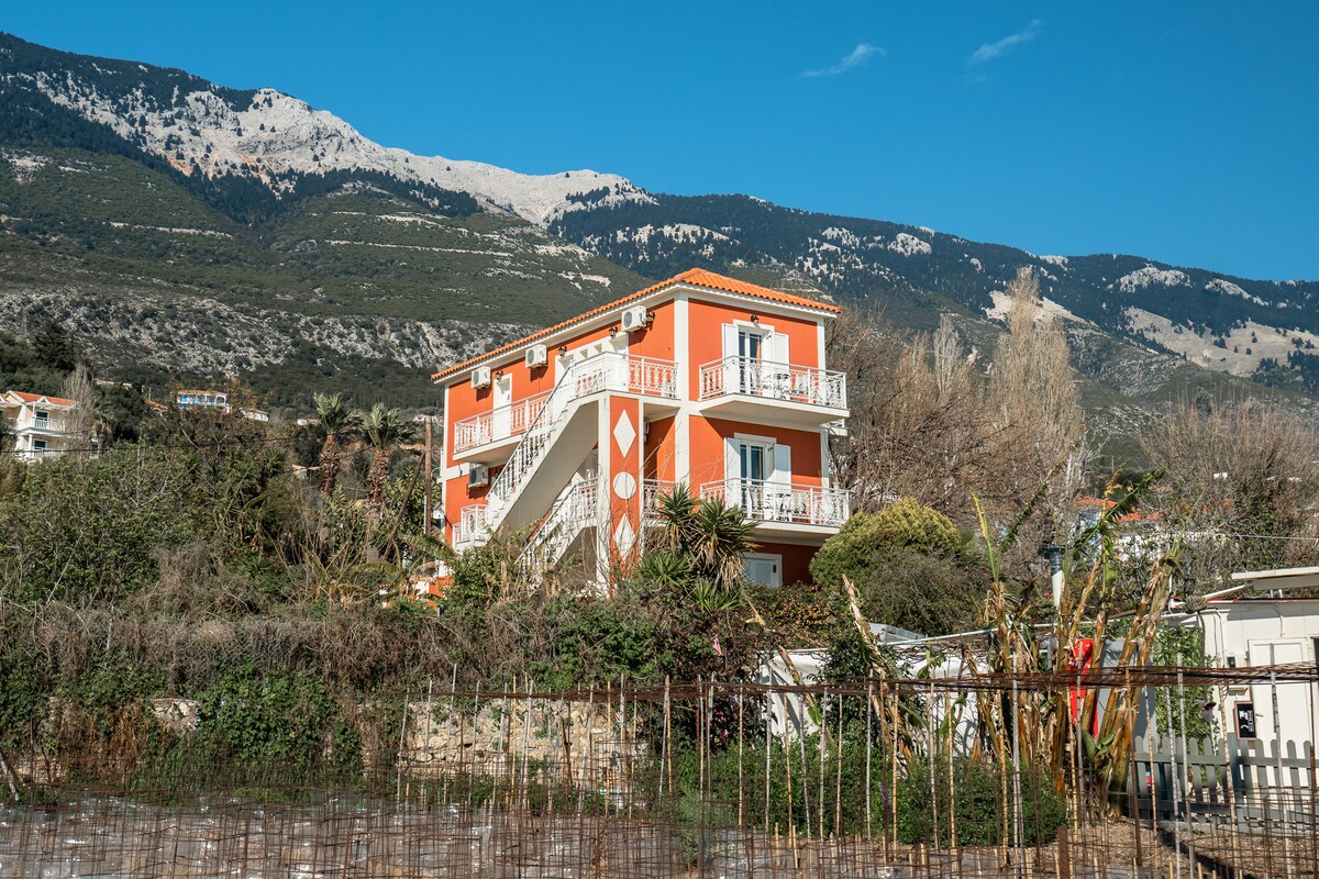 The property is situated in a natural green environment just above the coast. The suites have patios with uninterrupted views of a stunning scenery and sea views. The entrance of the port of Fiskardo, Ithaka and Lefkada in the North. Daphne suite shares with other 2 suites spacious outdoor area with terrace, large pool (11x5,5), sunbeds and umbrellas, ideal for relaxation.Within a 5 minutes walk is the nearest beach and seven minutes walk takes you to Fiskardo harbour. MHTE 0458K122K0302501