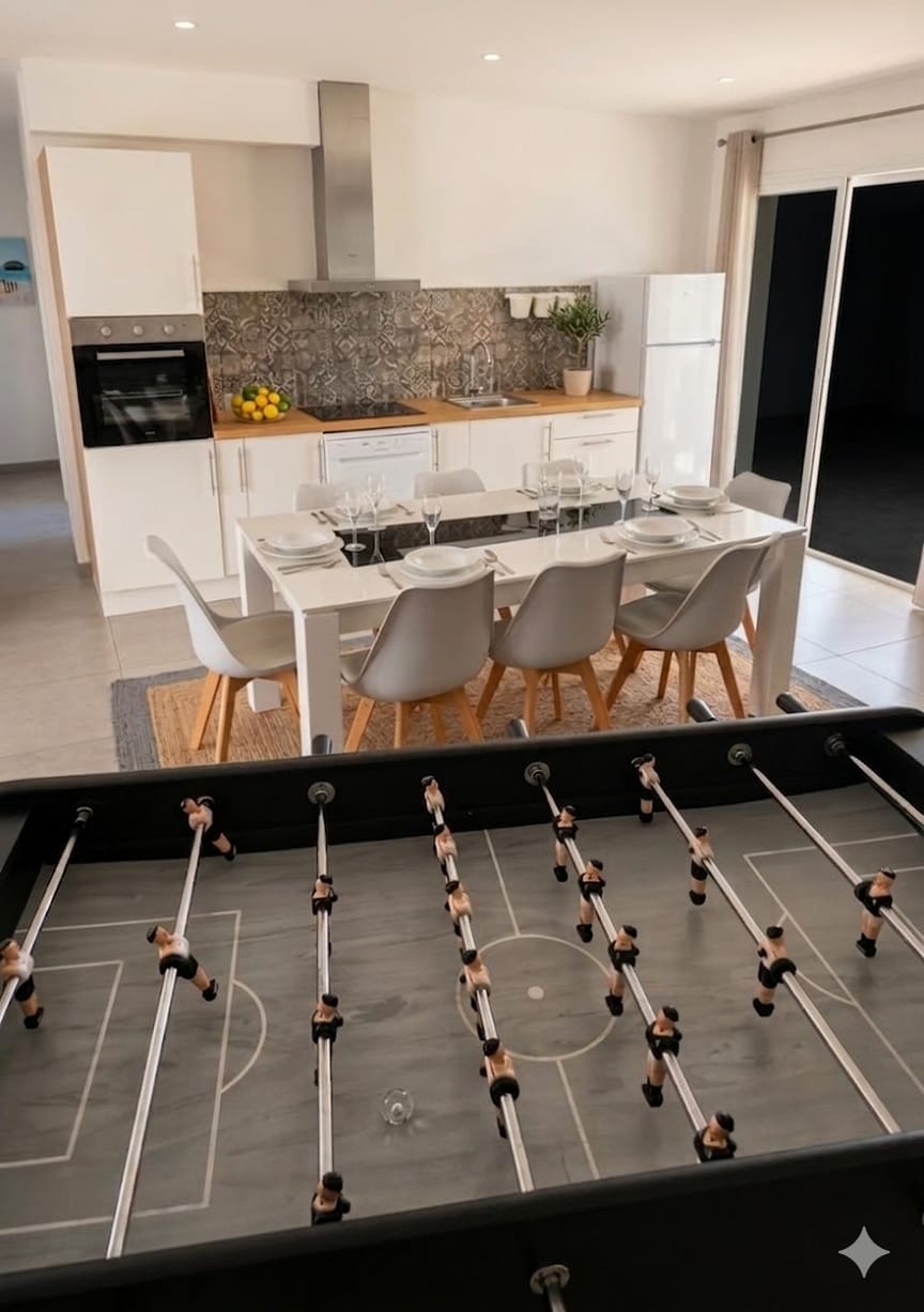 Argeles Plage Ground floor House of 75 m2 well located 300 m from the beach 50 m from bakery, pharmacy, restaurant Very quiet neighborhood, car parking in front of the accommodation. In summer, the resort offers a wide range of paddle fishing activities Nearby Aqualand, horseback riding, tennis, golf, hiking, skiing 1.5 hours away Living room, kitchen, Senseo foosball table 3 sofas, TV, air conditioning. Bathroom, washing machine, separate toilet 160 bed, 2 140 beds, dishwasher plancha 2 terraces fenced Resident next to the accommodation * NO PARTIES