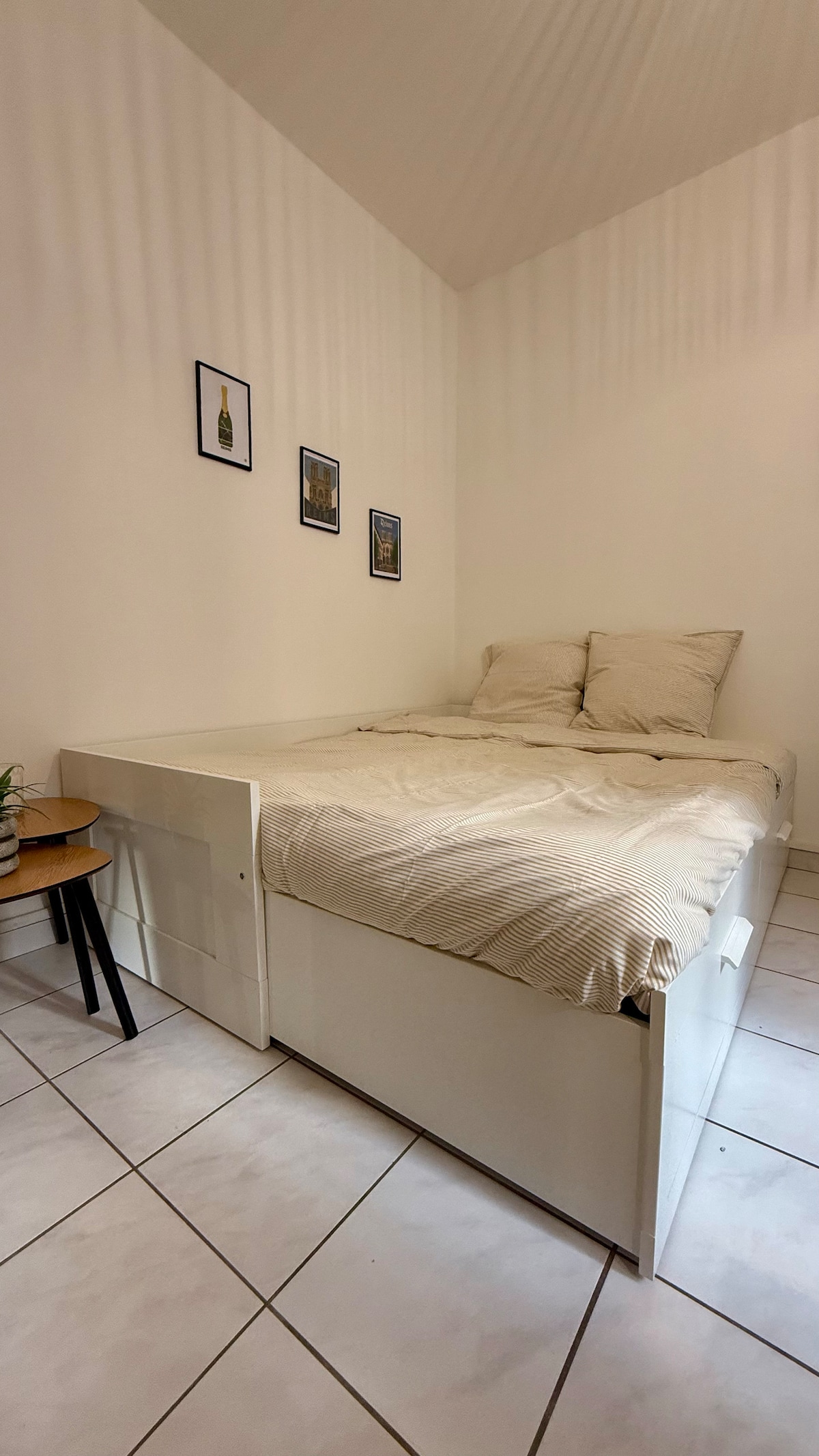 Located in the heart of the historic Saint-Rémi district, less than 100 meters from the Basilica, this apartment, renovated in 2024, offers an ideal location. It is equally distant (10-15 minutes walk) from the city center of Reims and the famous Champagne Houses (5 minutes walk), such as Taittinger, Ruinart, Veuve Clicquot, Pommery and G.H. Martel. You can easily explore the city, its shops and main attractions on foot.