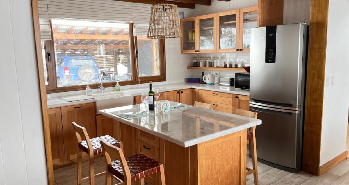 Enjoy the mountain experience at Wasi, a designer cabin spread over two floors, ideal for up to five people looking for comfort, nature and an authentic mountain experience all year round. Located in the exclusive Vallescondido neighbourhood in San Martín de los Andes, it offers: 🌊 Panoramic view of Lake Lácar and the Lanín volcano 🎿 Direct access to Chapelco 🏙 30-minute drive to the centre